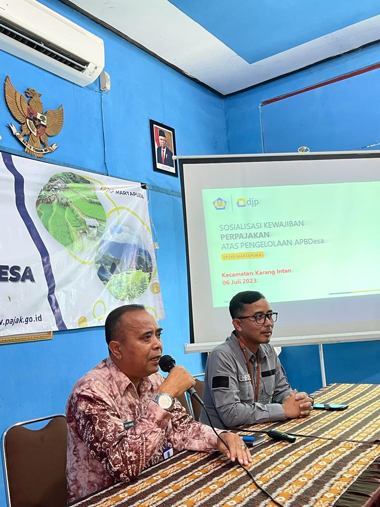 Kantor Pelayanan, Penyuluhan, dan Konsultasi Perpajakan (KP2KP) Martapura kembali menggelar monitoring dan evaluasi kewajiban perpajakan atas pengelolaan Anggaran Pendapatan dan Belanja Desa (APBDes). Dihadiri seluruh Bendahara Desa Kecamatan Karang Intan, kegiatan ini dilaksanakan di Aula Kecamatan Karang Intan, Kabupaten Banjar, Provinsi Kalimantan Selatan (Kamis, 6/7).