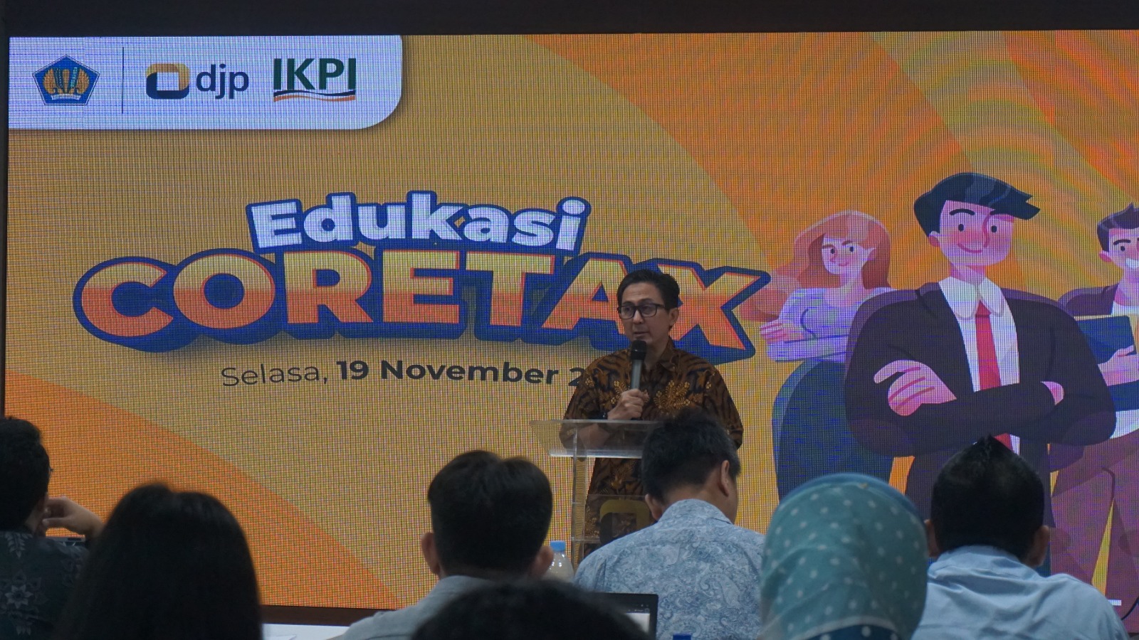 Kantor Wilayah Direktorat Jenderal Pajak (Kanwil DJP) Jakarta Pusat melaksanakan kegiatan Edukasi Coretax kepada para konsultan pajak yang tergabung dalam Ikatan Konsultan Pajak Indonesia (IKPI) Jakarta Pusat. Kegiatan ini dilaksanakan di Aula Indonesia Raya Kanwil DJP Jakarta Pusat, Kota Jakarta Pusat (Selasa, 19/11).