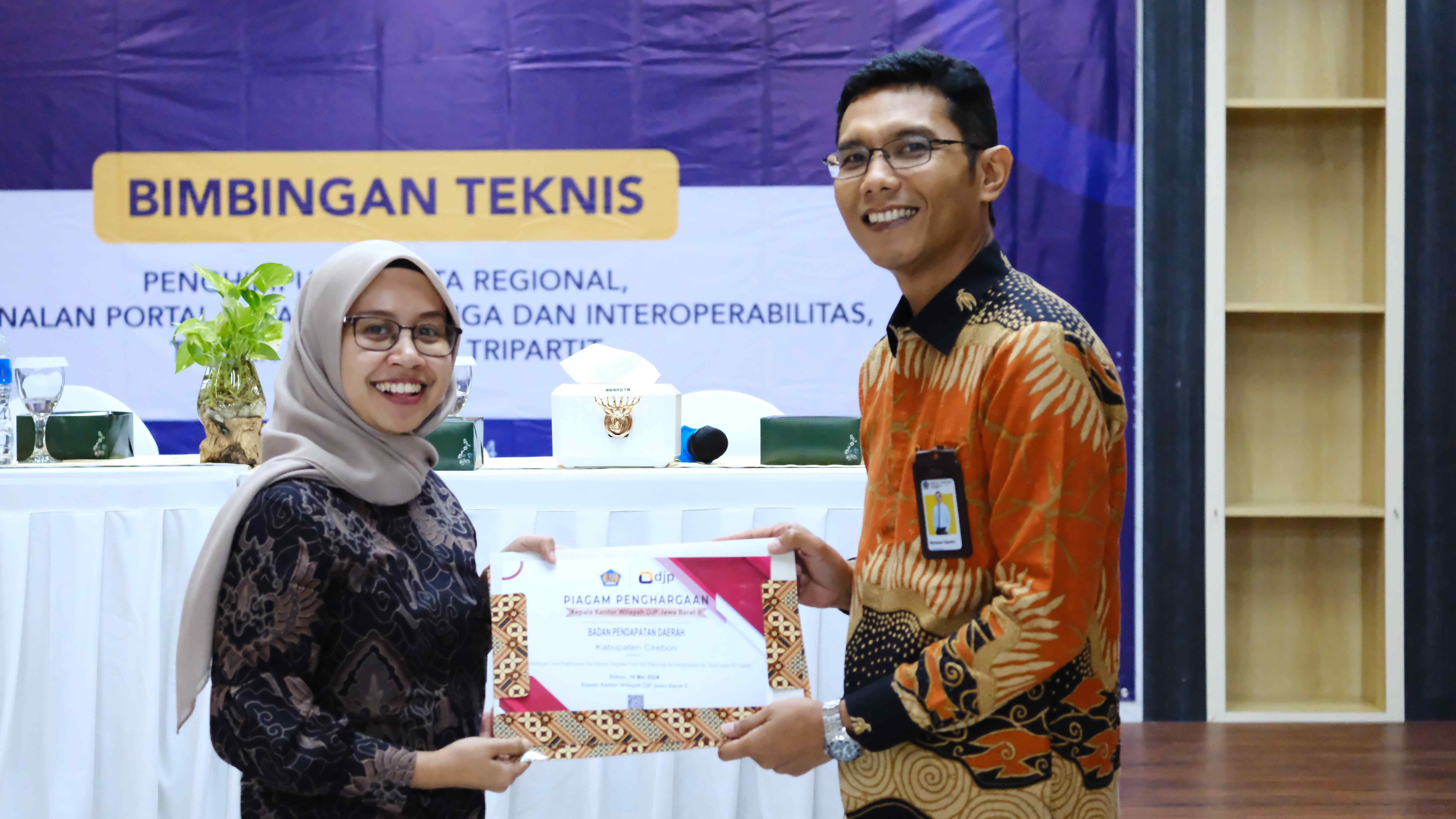 Kantor Wilayah Direktorat Jenderal Pajak (Kanwil DJP) Jawa Barat II dan Direktorat Data dan Informasi Perpajakan DJP mengadakan Bimbingan Teknis Penghimpunan Data Regional, Pengenalan Portal Data Pihak Ketiga dan Interoprabilitas, Tindak Lanjut PKS Tripartit (Selasa, 14/5). Kegiatan tersebut diikuti juga oleh perwakilan Dinas Penanaman Modal dan Pelayanan Terpadu Satu Pintu dan Badan Pendapatan Daerah dari seluruh Pemerintah Daerah di Lingkungan Kanwil DJP Jawa Barat II.