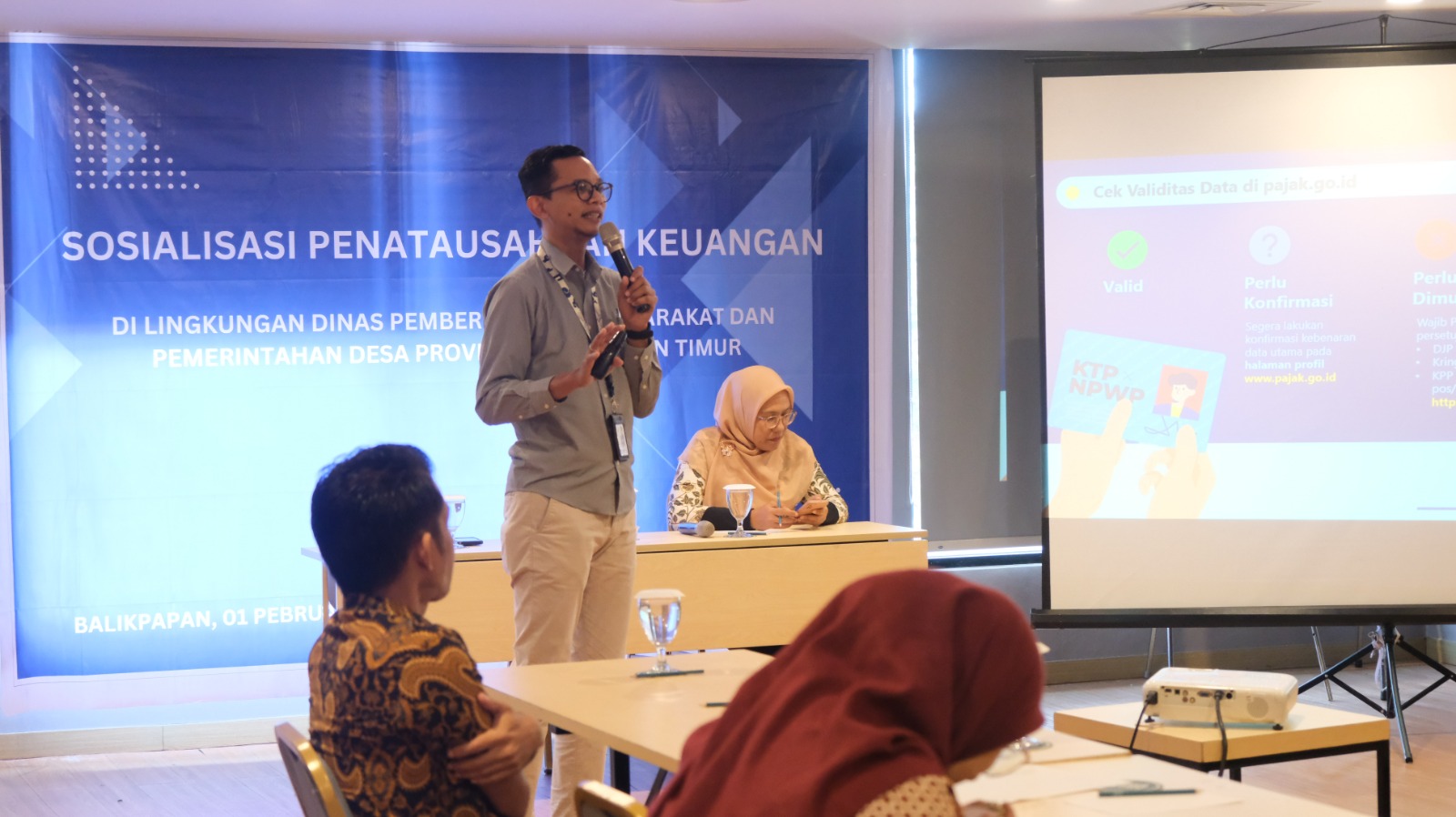 Penyuluh Kantor Wilayah Direktorat Jenderal Pajak Kalimantan Timur dan Utara (Kanwil DJP Kaltimtara) Agus Sugianto berkesempatan menjadi narasumber dalam kegiatan sosialisasi dan pelatihan Bendaharawan di lingkungan Dinas Pemberdayaan Masyarakat dan Pemerintah Desa (DPMPD) Provinsi Kalimantan Timur secara langsung di Ruang Inspirasi Hotel Four Points, Kota Balikpapan (Kamis, 1/2).