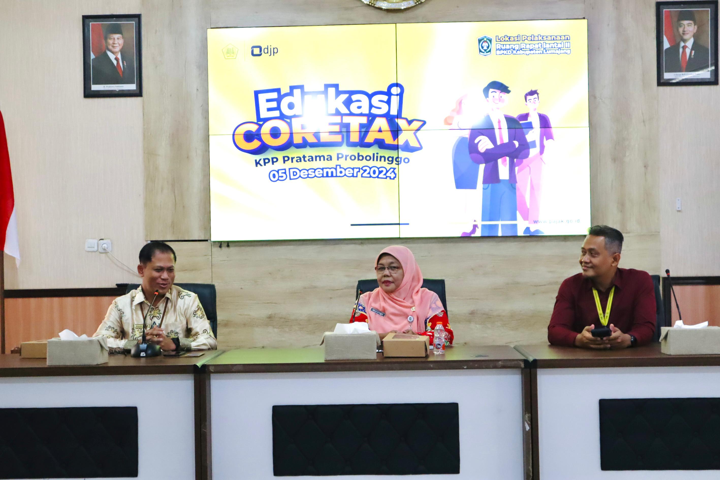 Sistem Inti Administrasi Perpajakan (SIAP) atau yang kerap disebut Coretax merupakan sistem yang dikembangkan oleh Direktorat Jenderal Pajak (DJP) dalam rangka reformasi perpajakan yang berkelanjutan pada tahun 2025 mendatang. Dalam rangka menyebarluaskan informasi tentang Coretax, Kantor Pelayanan Pajak (KPP) Pratama Probolinggo dan Kantor Pelayanan, Penyuluhan dan Konsultasi (KP2KP) Lumajang menyelenggarakan Edukasi Coretax khusus untuk instansi pemerintah (Kamis, 5/12).