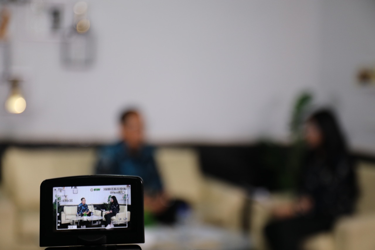 Kepala Kanwil DJP Kepri Cucu Supriatna berdialog dengan pembawa acara Batam TV Selly Febrilia Mayora membahas penerimaan pajak, kepatuhan Surat Pemberitahuan (SPT) Tahunan, dan Program Pengungkapan Sukarela (PPS).