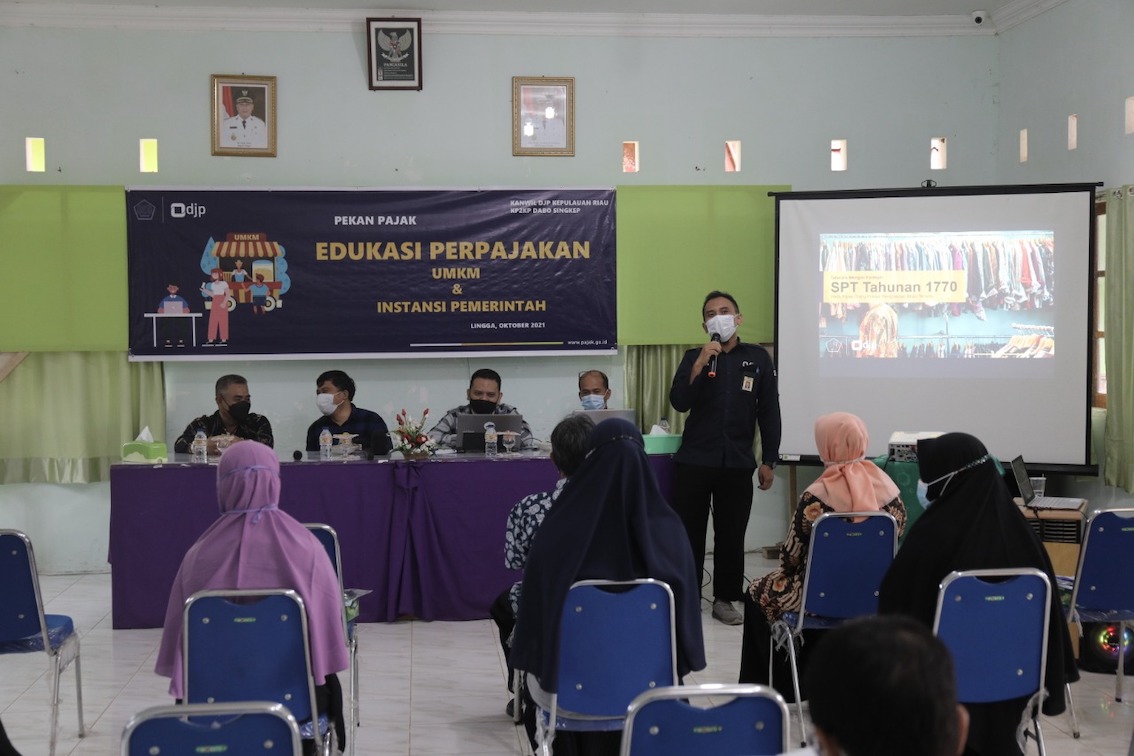Pekan pajak yang mengusung tema "Sadar Pajak Wujud Bela Negara" tersebut ditujukan kepada pelaku Usaha Mikro, Kecil, dan Menengah (UMKM) dan Bendahara Instansi Pemerintah Daerah Kabupaten Lingga.