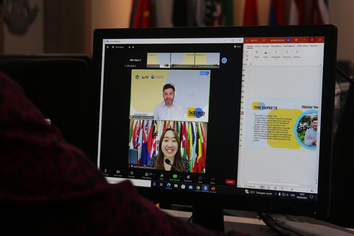 Direktorat Jenderal Pajak (DJP) kembali menggandeng Organisasi Ekonomi Internasional OECD (Organisation for Economic Co-operation and Development) mengadakan pelatihan peningkatan kapasitas perpajakan internasional secara daring bagi pegawai DJP selama 3 (tiga) hari pada tanggal 6-8 Juni 2023. Kegiatan ini merupakan rangkaian kegiatan Global Relations Programme yang memiliki tema “JOINT DGT-OECD WORKSHOP ON TAX TREATIES: INTERPRETATION