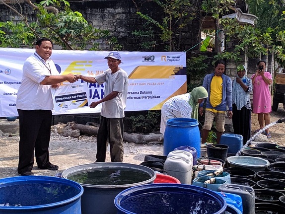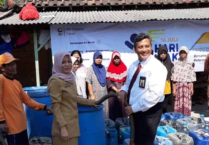 Kekeringan dirasakan oleh masyarakat Desa Genaharjo, Kecamatan Semanding, Kabupaten Tuban. Sejak sebulan terakhir, warga sudah merasakan kesulitan untuk mendapatkan air bersih. Dalam rangka Hari Pajak KPP Pratama Tuban salurkan air bersih untuk warga desa tersebut (Senin, 15/7). “Kepedulian dengan membantu mengantarkan air bersih di lokasi warga yang membutuhkannya. Sengaja dipilih Desa Genaharjo, karena memang lokasi dan warga desanya sangat membutuhkan air”, papar Kepala KPP Pratama Tuban, Eko Radnadi Susetio.