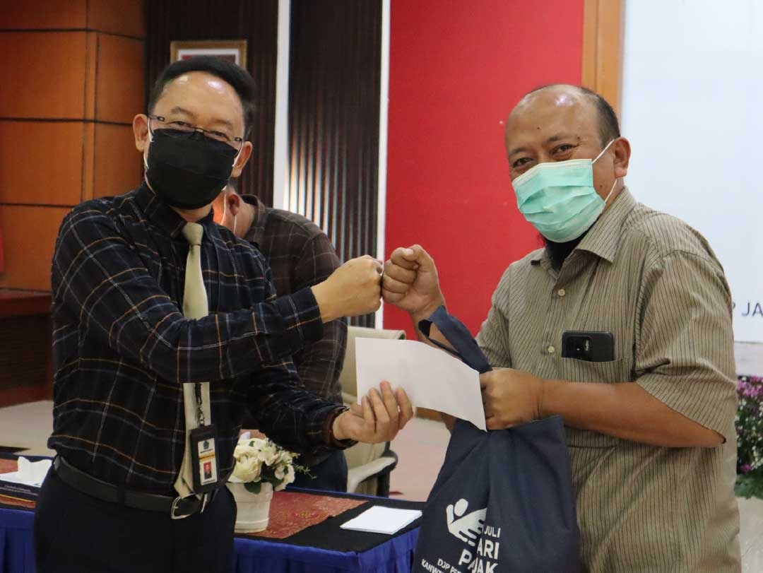 Kepala Bagian Umum Kanwil DJP Jawa Barat I Yusron Purbatin Hadi menyerahkan langsung paket bahan pokok dan uang tunai kepada 29 PPNPN di Lingkungan Kanwil DJP Jawa Barat I.