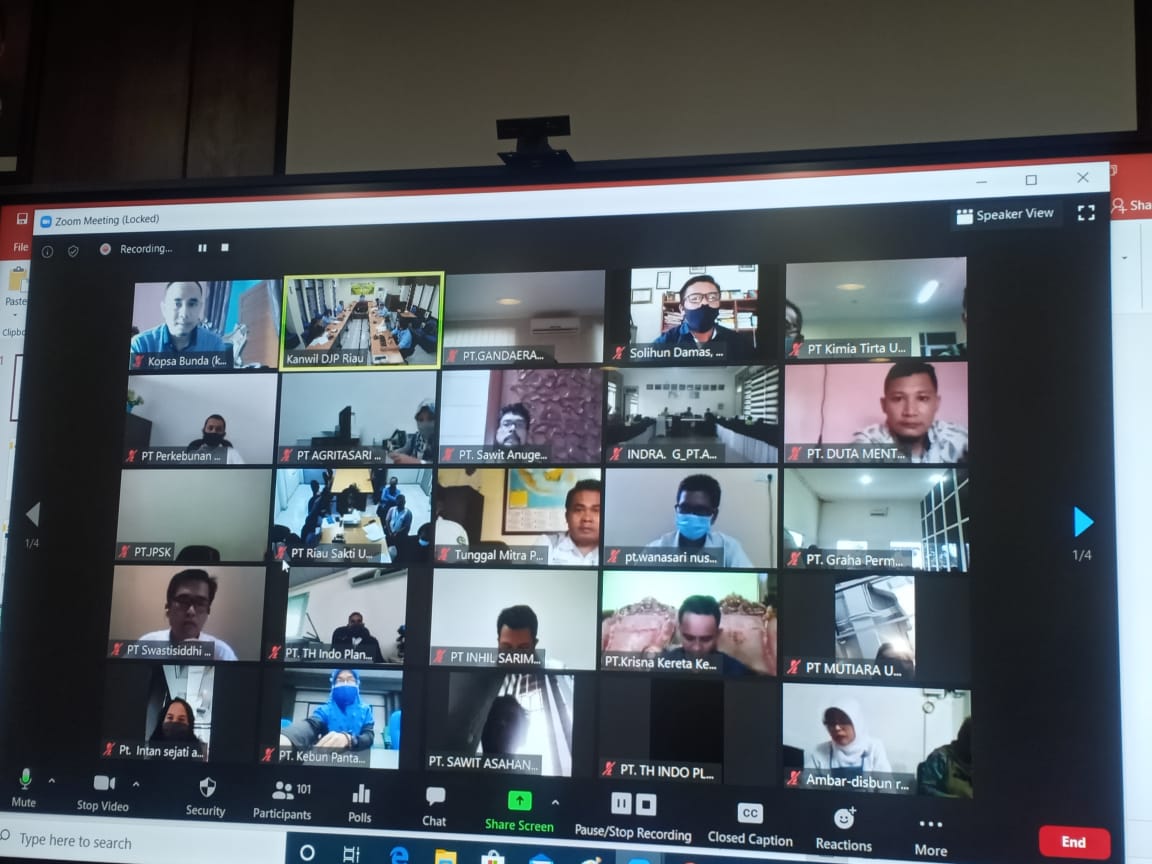 Kantor Wilayah DJP Riau bekerja sama dengan Dinas Perkebunan Provinsi Riau mengadakan sosialisasi terkait insentif perpajakan melalui media telekonferensi yang diikuti oleh 127 Wajib Pajak Sektor Perkebunan di Wilayah Provinsi Riau (Kamis, 14/5). Materi yang disampaikan terkait prosedur pemanfaatan insentif pajak yg diatur dalam PMK Nomor 44/PMK.03/2020, antara lain: