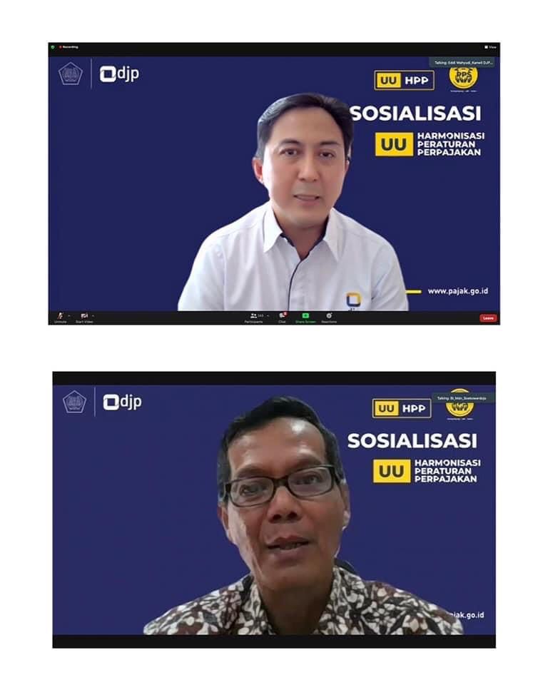 Medan, 20 Januari 2022 – Kantor Wilayah Direktorat Jenderal Pajak Sumatera Utara I (Kanwil DJP Sumut I) menyelenggarakan Sosialisasi Undang-undang Harmonisasi Peraturan Perpajakan (UU HPP) dan Program Pengungkapan Sukarela (PPS) melalui webinar kepada Badan Musyawarah Perbankan Daerah (BMPD) Sumut. Pada kesempatan itu Kepala Kanwil DJP Sumut I Eddi Wahyudi menggandeng BMPD untuk turut mengajak wajib pajak untuk memanfaatkan fasilitas yang ada pada UU HPP.