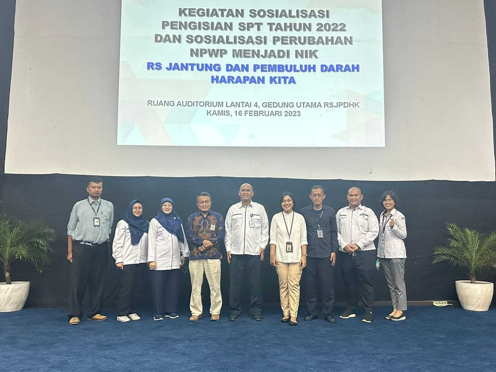 Kantor Pelayanan Pajak (KPP) Pratama Jakarta Palmerah mengadakan sosialisasi secara hybrid terkait Pelaporan SPT PPh Orang Pribadi Tahunan 2022 serta Implementasi Pemadanan NIK menjadi NPWP bagi seluruh dokter dan staf di lingkungan Rumah Sakit Jantung dan Pembuluh Darah Harapan Kita, Jakarta Barat (Kamis, 16/2).