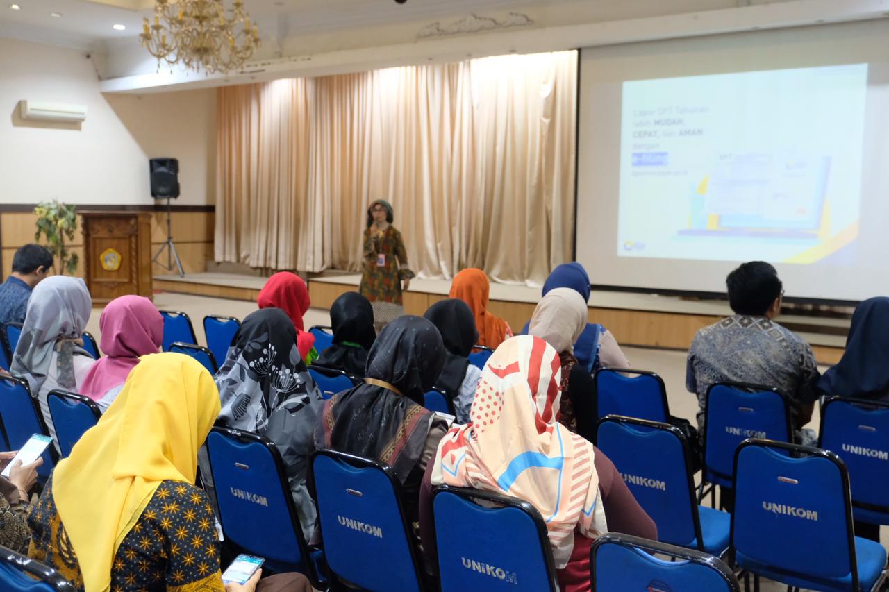 Tax Center Universitas Komputer Indonesia (Unikom) berkerja sama dengan Kanwil DJP Jawa Barat I menggelar acara Bimbingan Teknis Pelaporan SPT secara elektronik di aula lantai 4 kampus Unikom mulai pukul 9.00 WIB (Jumat, 14/2). Kegiatan ini diikuti oleh 50 peserta yang terdiri dari dosen dan karyawan Unikom.