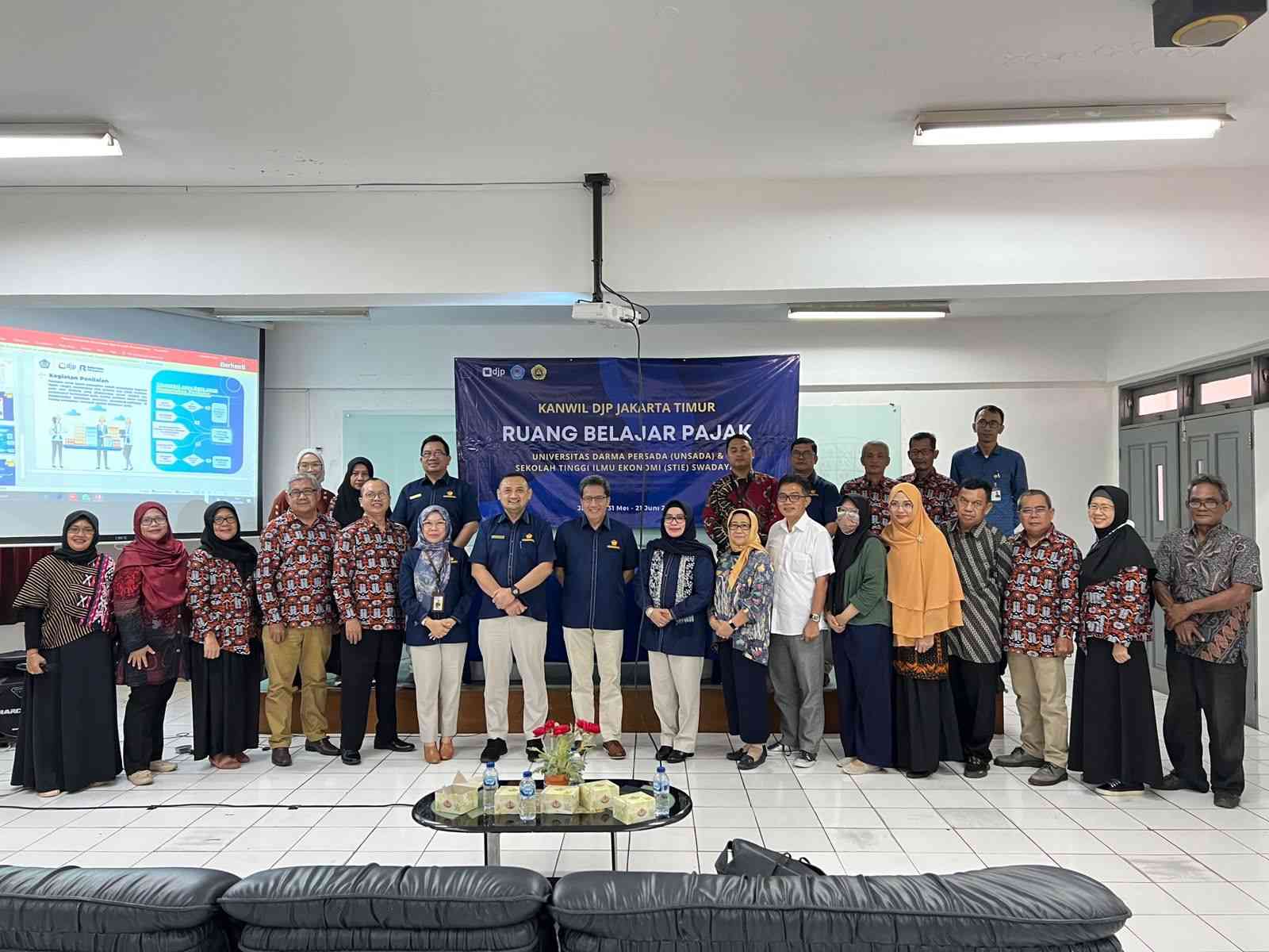 Kantor Wilayah DJP Jakarta Timur kembali mengadakan Ruang Belajar Pajak pertemuan kedua bagi para dosen pengajar Universitas Darma Persada (UNSADA) dan dosen pengajar Sekolah Tinggi Ilmu Ekonomi (STIE) Swadaya secara tatap muka di Ruang 209A Kampus UNSADA, Jakarta (Rabu, 31/5). Kegiatan ini diikuti oleh 26 dosen UNSADA dan STIE Swadaya.