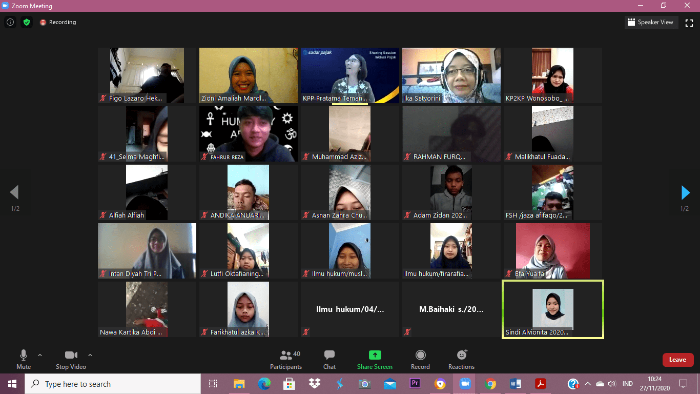 KPP Pratama Temanggung menyelenggarakan sit in inklusi kesadaran pajak bagi mahasiswa UNSIQ Wonosobo di ruang edukasi KPP Pratama Temanggung secara daring melalui zoom meeting (Jumat, 27/11).