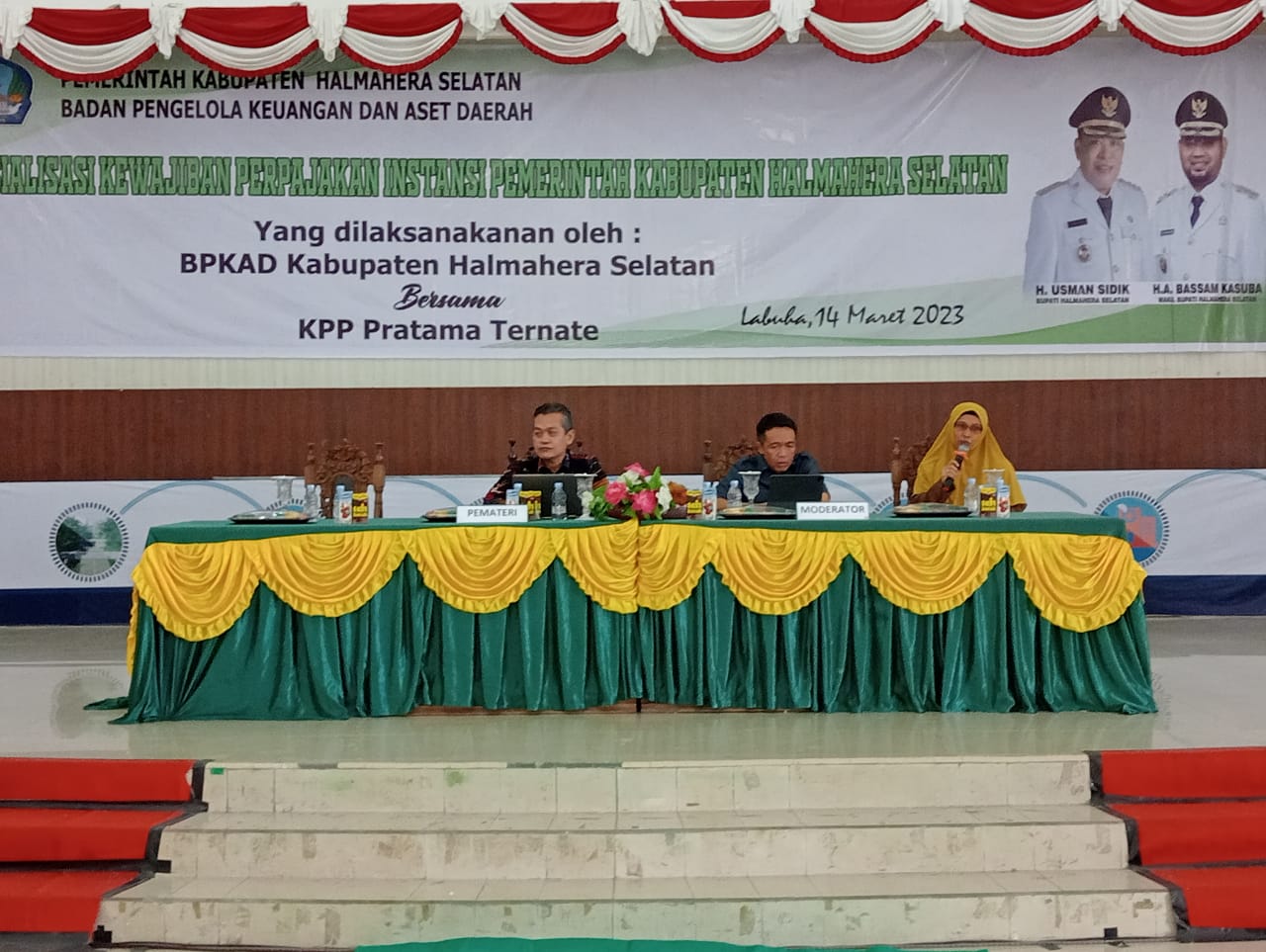 Kantor Pelayanan, Penyuluhan, dan Konsultasi Perpajakan (KP2KP) Labuha menyelenggarakan sosialisasi Peraturan Menteri Keuangan (PMK) Nomor 58 Tahun 2022 dan PMK Nomor 59 Tahun 2022 tentang Kewajiban Perpajakan bagi Instansi Pemerintah sebagai Pemungut dan Pemotong (Selasa, 14/03). Sosialisasi ini bertempat di Aula Kantor Bupati Halmahera Selatan, Maluku Utara.