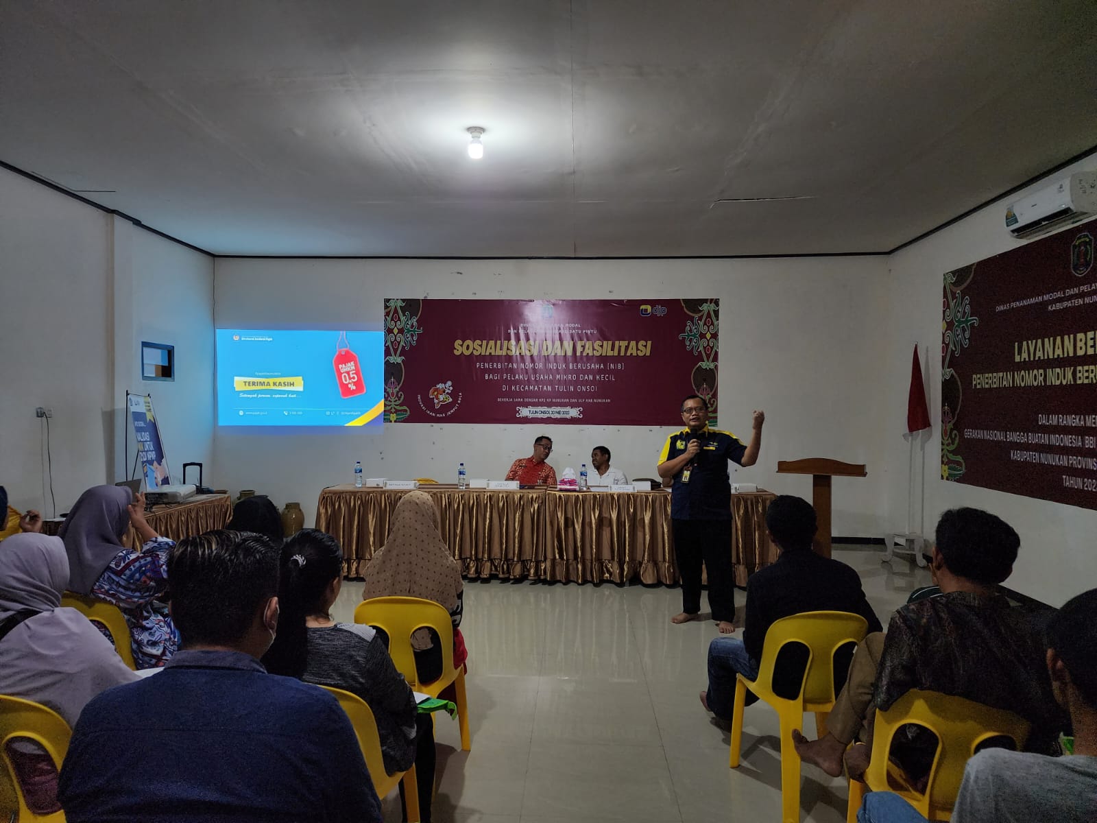 Dinas Penanaman Modal dan Pelayanan Terpadu Satu Pintu (DPMPTSP) Kabupaten Nunukan kembali gelar Layanan Bergerak Penerbitan Nomor Induk Berusaha (NIB) Bagi Pelaku UMK pengusaha Wilayah III yang turut menggandeng Kantor Pelayanan Penyuluhan dan Konsultasi Perpajakan (KP2KP) Nunukan di Kec. Tulin Onsoi, Kab. Nunukan (Sabtu, 20/5).