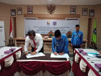Bupati Hulu Sungai Selatan (Bupati HSS) Achmad Fikry bersama Kepala KPP Pratama Barabai Rudianto Gurning melakukan penandatanganan Memorandum of Understanding (MoU) di Aula Rakat Mufakat Sekretariat Daerah Pemerintah Kabupaten Hulu Sungai Selatan, Kalimantan Selatan (Senin, 17/2). MoU tersebut mengikat kedua belah pihak terkait koordinasi, konsolidasi dan harmonisasi di bidang perpajakan.