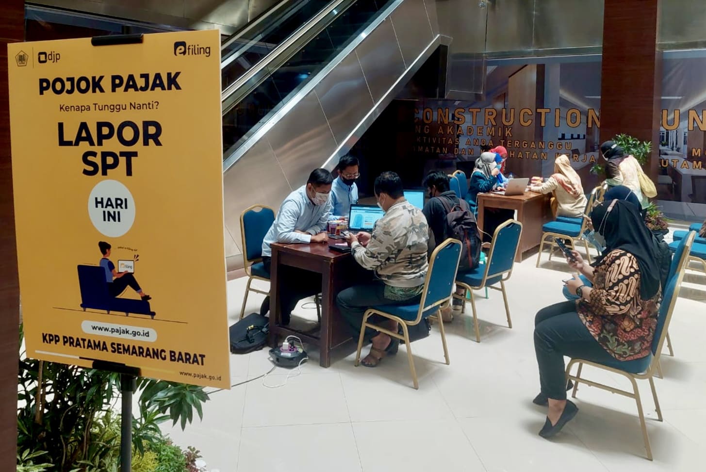 Kantor Pelayanan Pajak (KPP) Pratama Semarang Barat mengadakan Pojok Pajak terkait Pelayanan Pelaporan Surat Pemberitahuan (SPT) Tahunan Orang Pribadi di Universitas Negeri Semarang (Rabu, 30/3).