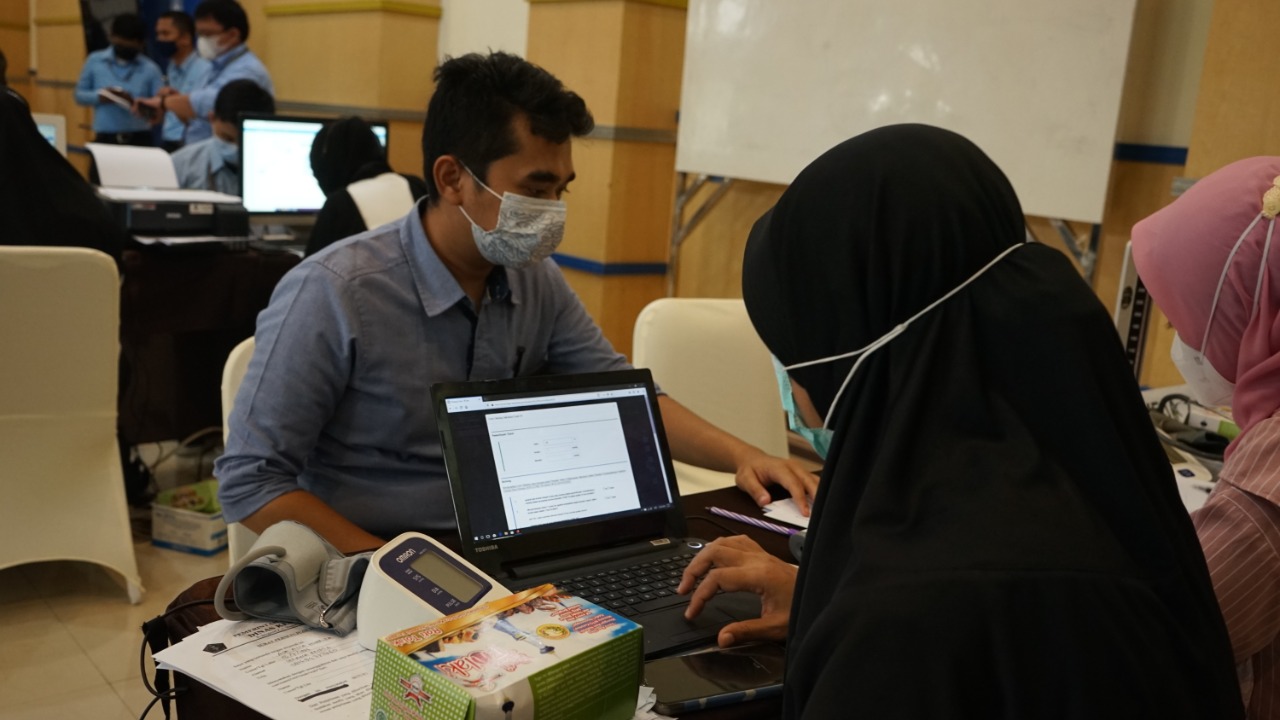 Para pegawai melakukan registrasi dengan mempersiapkan berkas yang diperlukan yaitu Kartu Tanda Penduduk (KTP). Setelah itu, para pegawai melalui tahap screening sebagai langkah pertama untuk menentukan apakah pegawai dapat dilakukan vaksinasi maupun tidak. Para pegawai yang berhasil melalui tahap screening tersebut dapat menerima vaksin yang disuntikkan oleh petugas kesehatan. Setelah dilakukan proses penyuntikkan vaksin, para pegawai masih harus melalui tahap observasi untuk melihat adanya efek samping setelah penyuntikan vaksin.