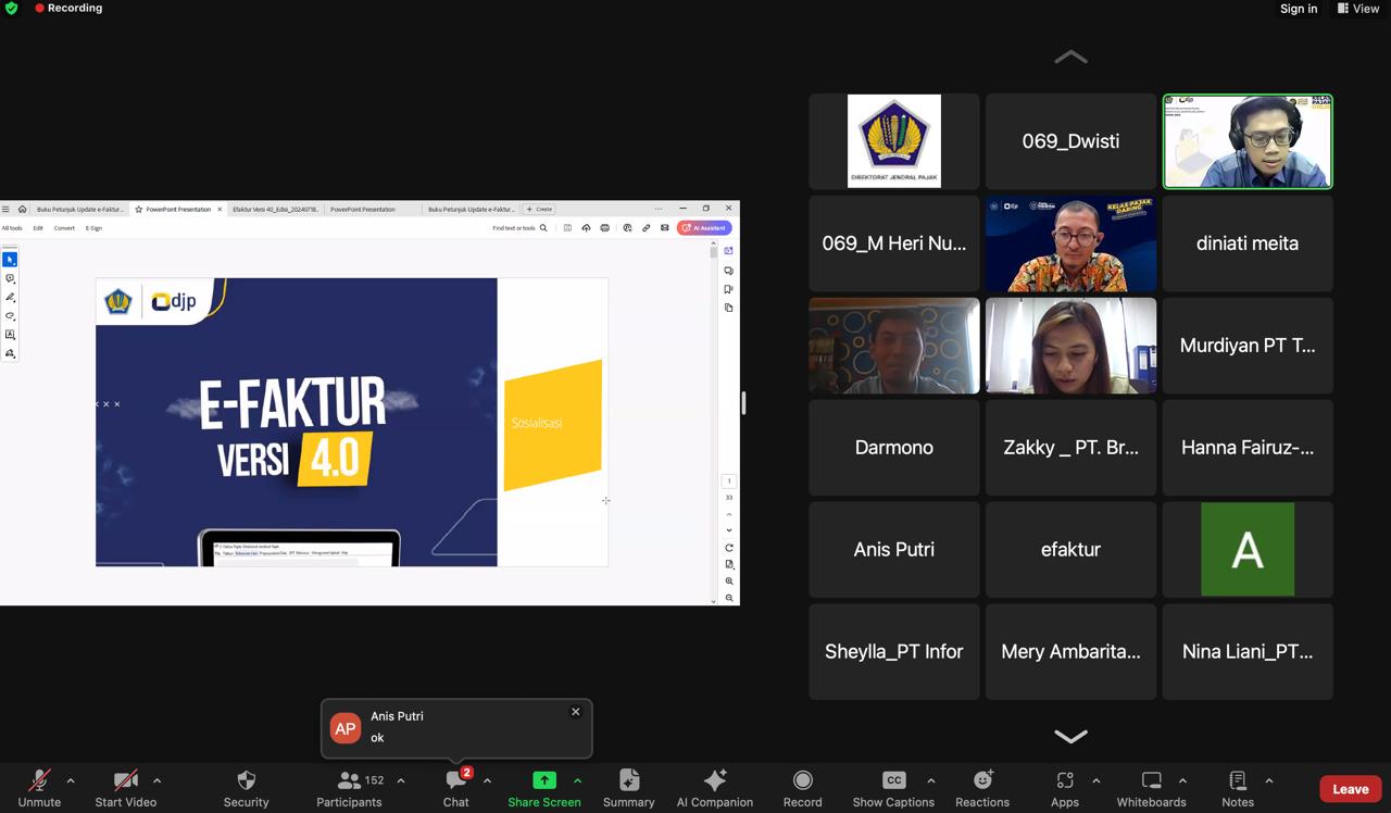 Pada kelas pajak tersebut, para wajib pajak juga diberi kesempatan untuk berkonsultasi mengenai kendala yang dihadapi dalam menggunakan e-Faktur versi 4.0. Salah satu pertanyaan yang paling sering diajukan oleh wajib pajak mengenai penggunaan NPWP 000 untuk lawan transaksi. “Saat ini penginputan data lawan transaksi pada Faktur Pajak Keluaran di e-Faktur versi 4.0, kolom NPWP mengakomodir pengisian NPWP 15 digit, NPWP 16 digit, atau NIK,” pungkas Rahmat Hidayat Fungsional Penyuluh Pajak KPP Madya Dua Jakarta Selatan I.