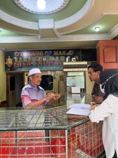 Rifqi Chorinando dan Salshabilah Rimadina menjelaskan maksud dan tujuan kunjungan ini kepada pemilik toko emas di wilayah Pondok Baru Kabupaten Bener Meriah. Salah satu toko emas yang dikunjungi adalah Toko Emas Jasa Saudara. H Bustami selaku pemilik toko emas menyambut kunjungan KP2KP Rimba Raya.