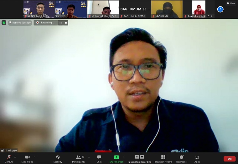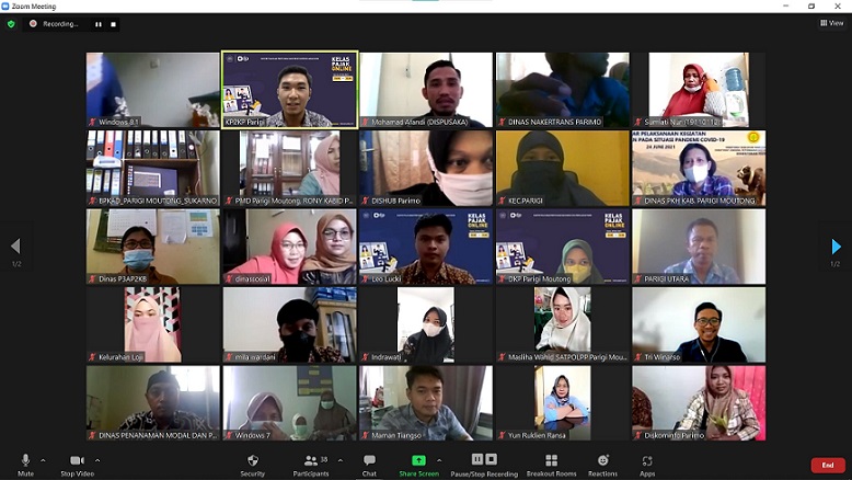 Acara dimulai dengan menyanyikan lagu Indonesia Raya, dilanjutkan dengan sambutan oleh Kepala KP2KP Parigi, penyampaian materi dan sesi diskusi, lalu diakhiri dengan foto bersama. Kegiatan diikuti oleh peserta dengan antusias dan aktif. Meski dilakukan melalui media konferensi digital, acara tetap dapat berjalan dengan lancar.