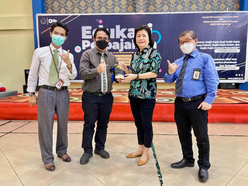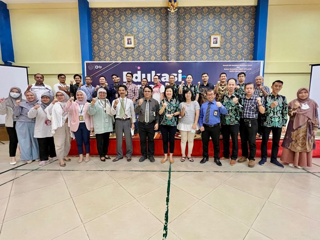 Kantor Wilayah Direktorat Jenderal Pajak Sumatera Barat dan Jambi melaksanakan edukasi perpajakan Peraturan Menteri Keuangan (PMK) nomor 62/PMK.03/2022 tentang Pajak Pertambahan Nilai (PPN) atas Penyerahan Liquified Petroleum Gas (LPG) Tertentu bagi Ikatan Konsultan Pajak Indonesia (IKPI) cabang Jambi di Aula Kantor Pelayanan Pajak (KPP) Pratama Jambi Telanaipura (Kamis, 8/9). Adapun acara dihadiri langsung oleh Ketua IKPI Jambi Nurlena beserta jajaran anggota IKPI Jambi. Turut hadir pula Kepala KPP Pratama Jambi Telanaipura Sri Mulyono dan Kepala KPP Pratama Jambi Pelayangan Subandiyono.