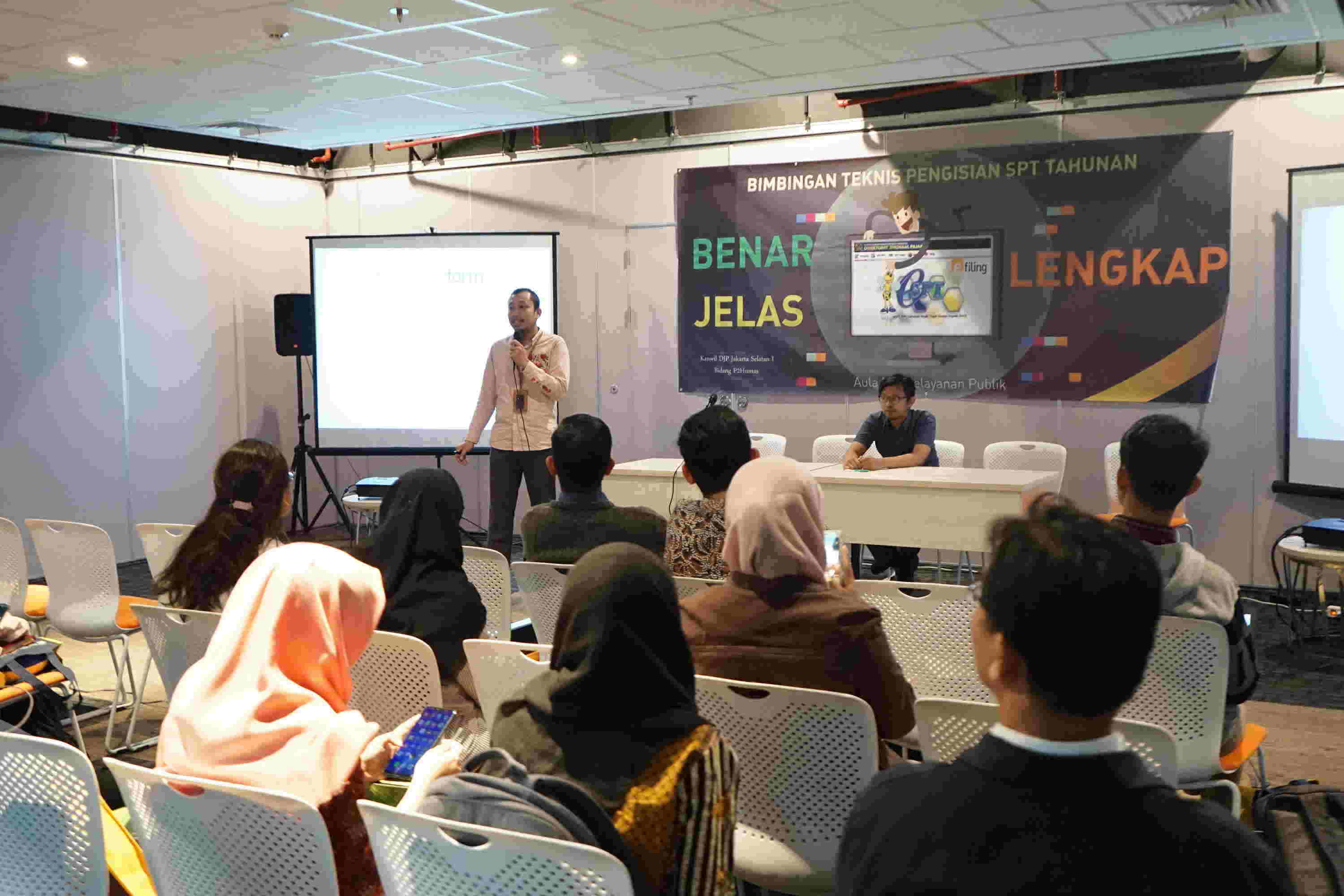 Dalam rangka memberi pemahaman mengenai hak dan kewajiban perpajakan, Kanwil DJP Jakarta Selatan I bersama KPP Pratama Jakarta Setiabudi Tiga menyelenggarakan Bimbingan Teknis Pengisian dan Pelaporan SPT Tahunan di aula lantai 4 Mal Pelayanan Publik Provinsi DKI Jakarta (Kamis, 22/8).