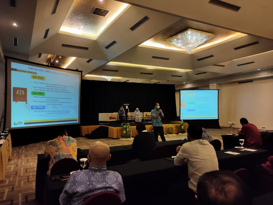 Kantor Pelayanan Pajak (KPP) Pratama Tenggarong mengadakan edukasi perpajakan bersama Badan Pengelolaan Keuangan dan Aset Daerah (BPKAD) Pemerintah Kabupaten Kutai Kartanegara di Balipapan (Sabtu, 24/10). Edukasi yang diadakan di Ball Room Hotel Jatra Balikpapan ini membahas tentang aturan perpajakan instansi pemerintah dan Pemulihan Ekonomi Nasional (PEN) berdasarkan Peraturan Menteri Keuangan Nomor 231/PMK.03/2019.