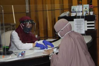 Persiapan ini meliputi pemasangan kaca pembatas transparan (shield) antara petugas dan wajib pajak di loket Tempat Pelayanan Terpadu (TPT) dan help desk, pemasangan pembatas jarak duduk di ruang tunggu TPT serta pembatasan jumlah wajib pajak yang berkunjung ke KPP.