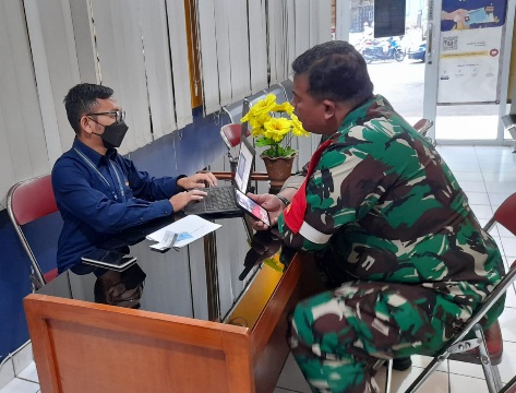 “Pak saya belum laporan pajak, tolong dibantu,“ ucap seorang anggota Tentara Nasional Indonesia (TNI) kepada petugas pajak Ahmad Rifai di Tempat Pelayanan Terpadu (TPT) Kantor Pelayanan, Penyuluhan, dan Konsultasi Perpajakan (KP2KP) Pelabuhan Ratu Jalan Bhayangkara KM 1, Citepus, Palabuhanratu, Kabupaten Sukabumi (Rabu, 26/7).