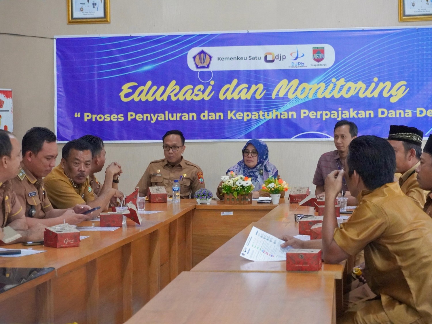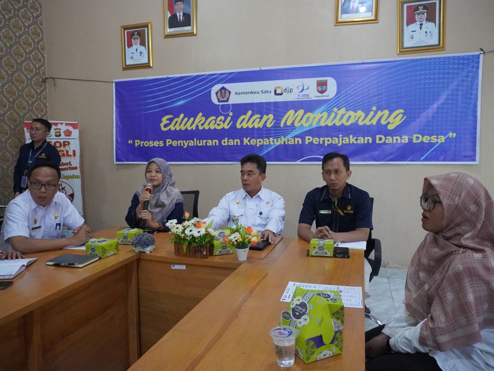 Kantor Pelayanan Pajak (KPP) Pratama Lubuk Linggau dan Kantor Pelayanan, Penyuluhan, dan Konsultasi Perpajakan (KP2KP) Tugumulyo melaksanakan Kegiatan Edukasi dan Pengawasan Bersama Kewajiban Perpajakan Dana Desa di Kantor Inspektorat Daerah Kabupaten Musi Rawas, Desa Muara Beliti Baru (Selasa, 24/9).