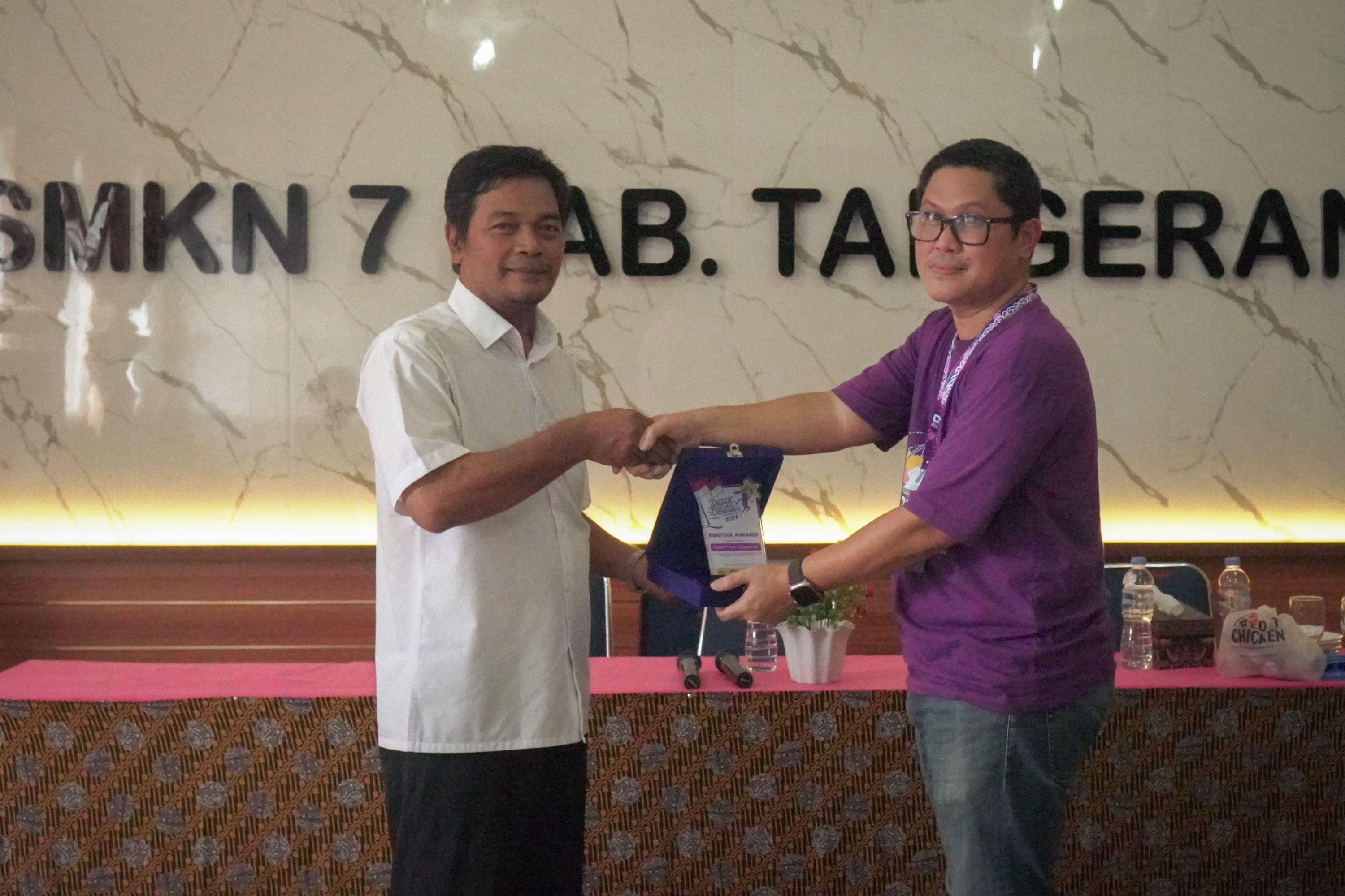 Siswa SMK Negeri 7 kabupaten Tangerang mengikuti setiap sesi dengan antusias. Memahami materi pajak yang dianggap rumit dapat dimulai dengan cara menyenangkan dan tentunya positif. “Kami harap adik-adik dapat memahami perannya saat ini dan terus melakukan hal positif agar impian Indonesia Emas 2045 tidak sebatas angan,” tutur Samsul Hani, Asisten Penyuluh Pajak. Acara ditutup dengan pembagian souvenir dan pemberian Edu Tax Award kepada perwakilan SMK Negeri 7 Kabupaten Tangerang sebagai mitra Inklusi Kesadaran Pajak.