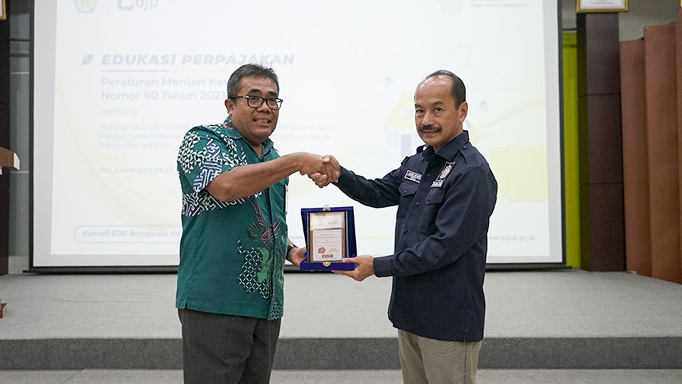 Kantor Wilayah Direktorat Jenderal Pajak (Kanwil DJP) Bengkulu dan Lampung bekerja sama dengan Dewan Pengurus Daerah Asosiasi Pengembang Perumahan dan Permukiman Seluruh Indonesia (APERSI) Provinsi Lampung menggelar sebuah acara edukasi perpajakan yang mengangkat topik krusial bertema "Peraturan Menteri Keuangan (PMK) Nomor 60 Tahun 2023 tentang Batasan Rumah Umum, Pondok Boro, Asrama Mahasiswa dan Pelajar, Serta Pekerja Yang Dibebaskan Dari Pengenaan Pajak Pertambahan Nilai" bertempat di Aula Raflesiger Lantai 5, Kanwil DJP Bengkulu dan Lampung, Kota Bandar Lampung (Kamis, 3/8).