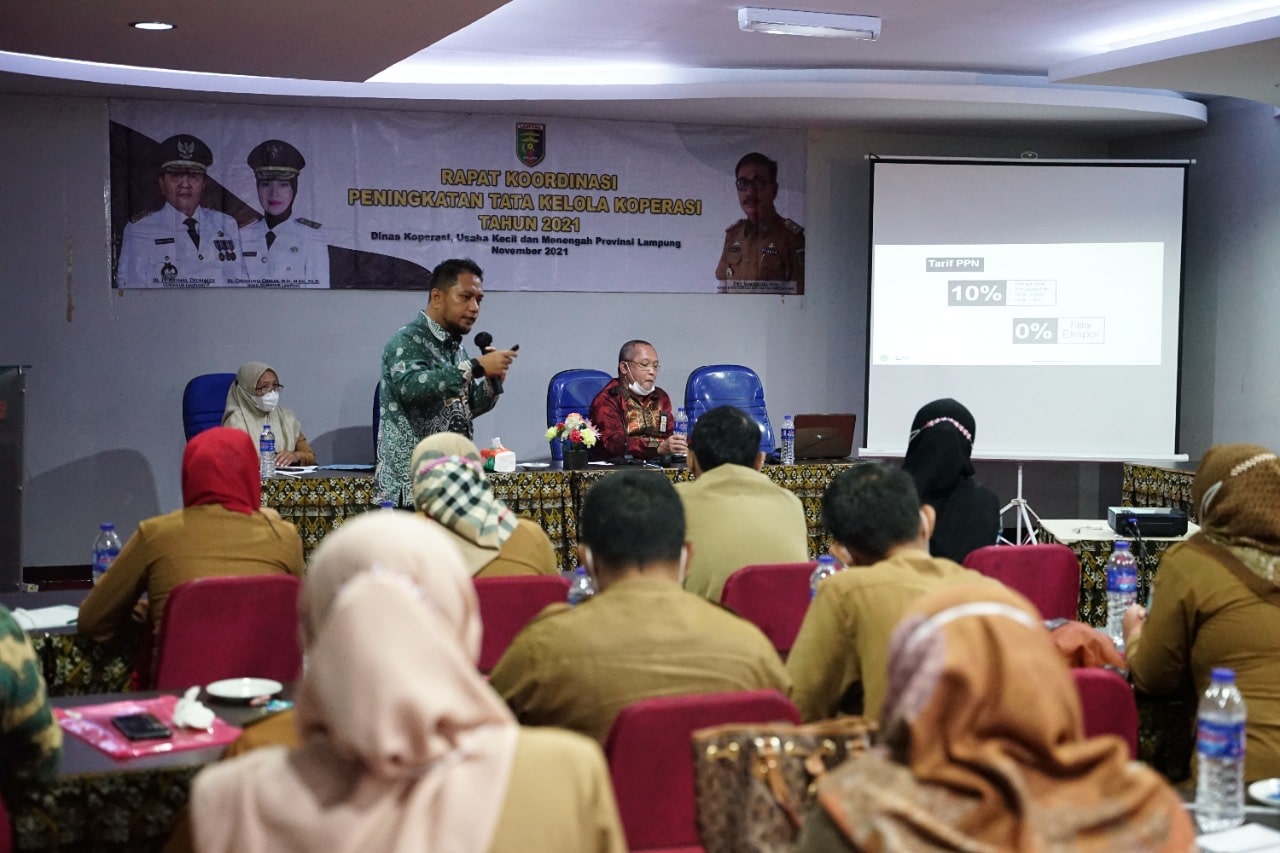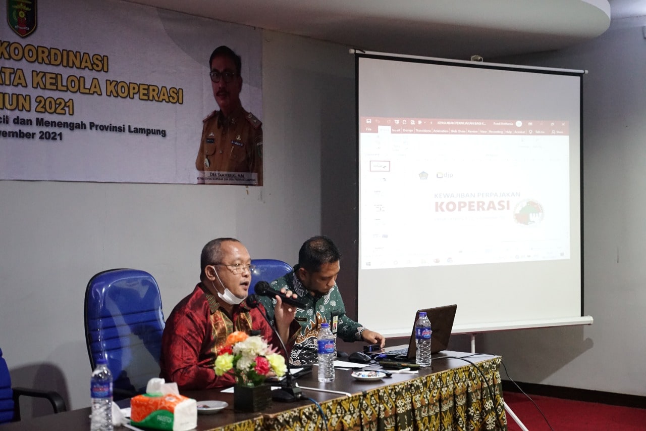 Kantor Wilayah (Kanwil) Direktorat Jenderal Pajak (DJP) Bengkulu dan Lampung (Bela) menghadiri acara Rapat Koordinasi Peningkatan Kualitas Tata Kelola Koperasi yang diselenggarakan Dinas Koperasi dan Usaha Kecil Menengah Pemerintah Provinsi Lampung di Hotel Grand Praba, Lampung (Selasa, 09/11).
