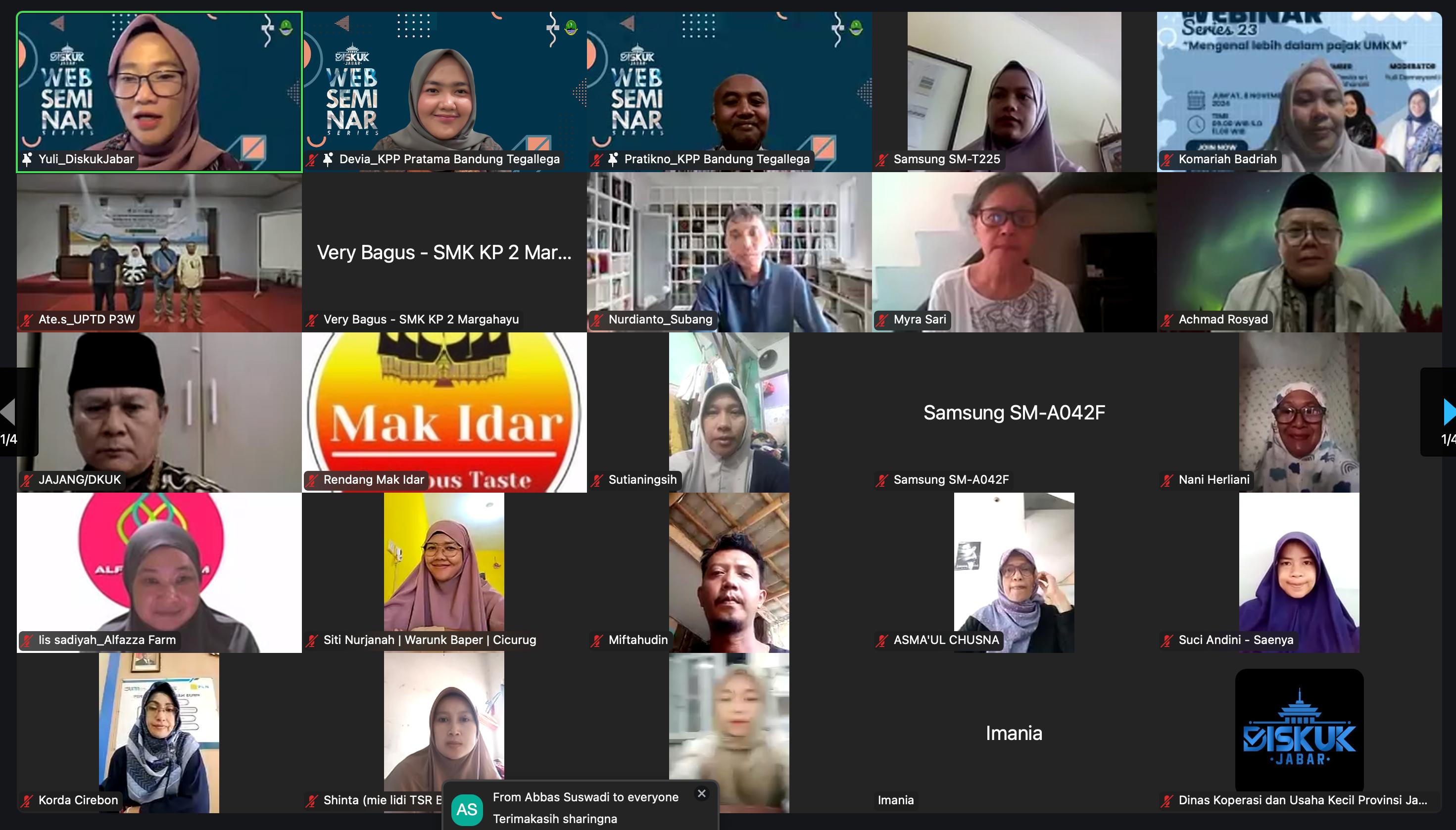 Kantor Pelayanan Pajak (KPP) Pratama Bandung Tegallega bekerja sama dengan Dinas Koperasi dan Usaha Kecil (Diskuk) Provinsi Jawa Barat menyelenggarakan seminar perpajakan yang diselenggarakan secara daring dengan tajuk Mengenal Lebih Dalam Pajak UMKM di Kota Bandung (Jumat, 8/11).