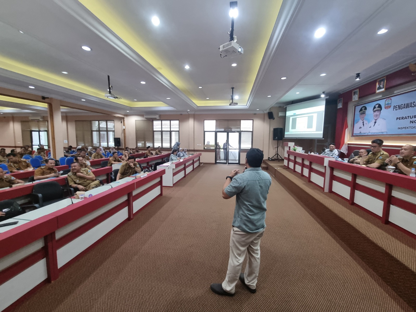 Fungsional Penyuluh Pajak, Candra Irawan, dan Account Representative, Yaser Zain, menjadi pemateri dari KPP Pratama Natar. Narasumber menyampaikan materi terkait penggunaan Coretax DJP dalam menjalankan hak dan kewajiban perpajakan instansi pemerintah daerah.