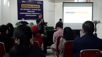 Kantor Pelayanan, Penyuluhan, dan Konsultasi Perpajakan (KP2KP) Mamasa bekerja sama dengan Kamar Dagang dan Industri (Kadin) Kabupaten Mamasa mengadakan kegiatan sosialisasi Undang-Undang Harmonisasi Peraturan Perpajakan (UU HPP) (Kamis, 23/12). Acara ini dilangsungkan secara tatap muka di ruang aula Hotel Sajojo, Kabupaten Mamasa.