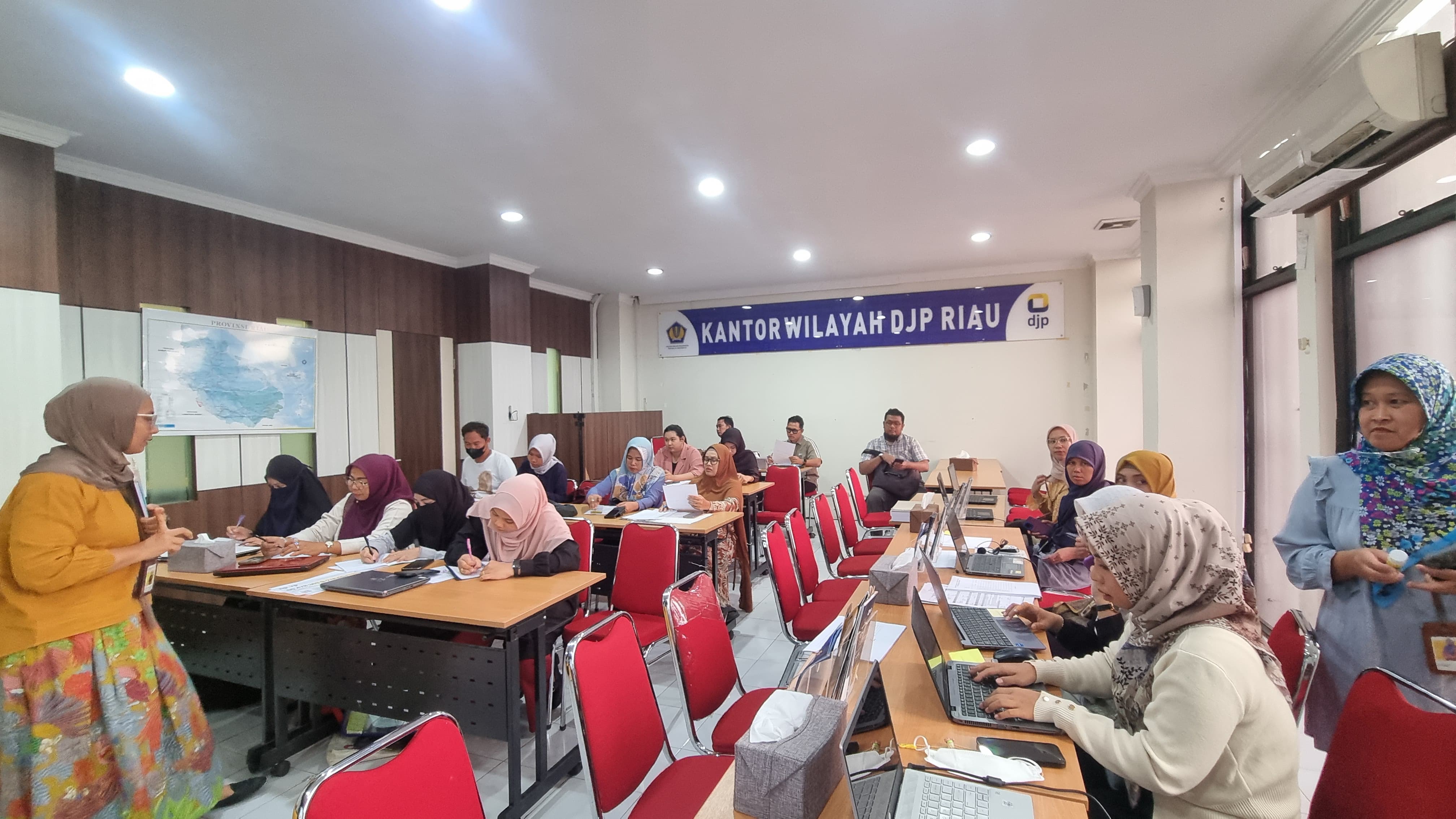 Kantor Wilayah Direktorat Jenderal Pajak Riau (Kanwil DJP Riau) dan Kantor Wilayah Kementerian Hukum dan Hak Asasi Manusia Provinsi Riau (Kanwil Kemenkumham Provinsi Riau) mengadakan Kelas Pajak dan Layanan Perpajakan bagi Perseroran Perorangan di Ruang Hang Jebat, Gedung Kanwil DJP Riau jalan Sudirman pada hari Senin dan Selasa tanggal 18 dan 19 Maret 2024.