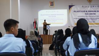 Dalam seminar yang mengangkat tema “Peran Generasi Muda untuk Revitalisasi Performa Perpajakan Indonesia”, Penyuluh Pajak Rudy Rudiawan dan Adhitia Mulyadi menyampaikan peran pajak bagi negara dan manfaatnya bagi masyarakat.