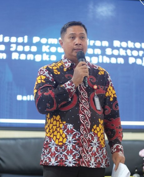 Made Yoga Sudharma selaku Kepala Otoritas Jasa Keuangan (OJK) Kalimantan Timur turut hadir memberikan materi terkait peran OJK dalam rangka penagihan pajak.