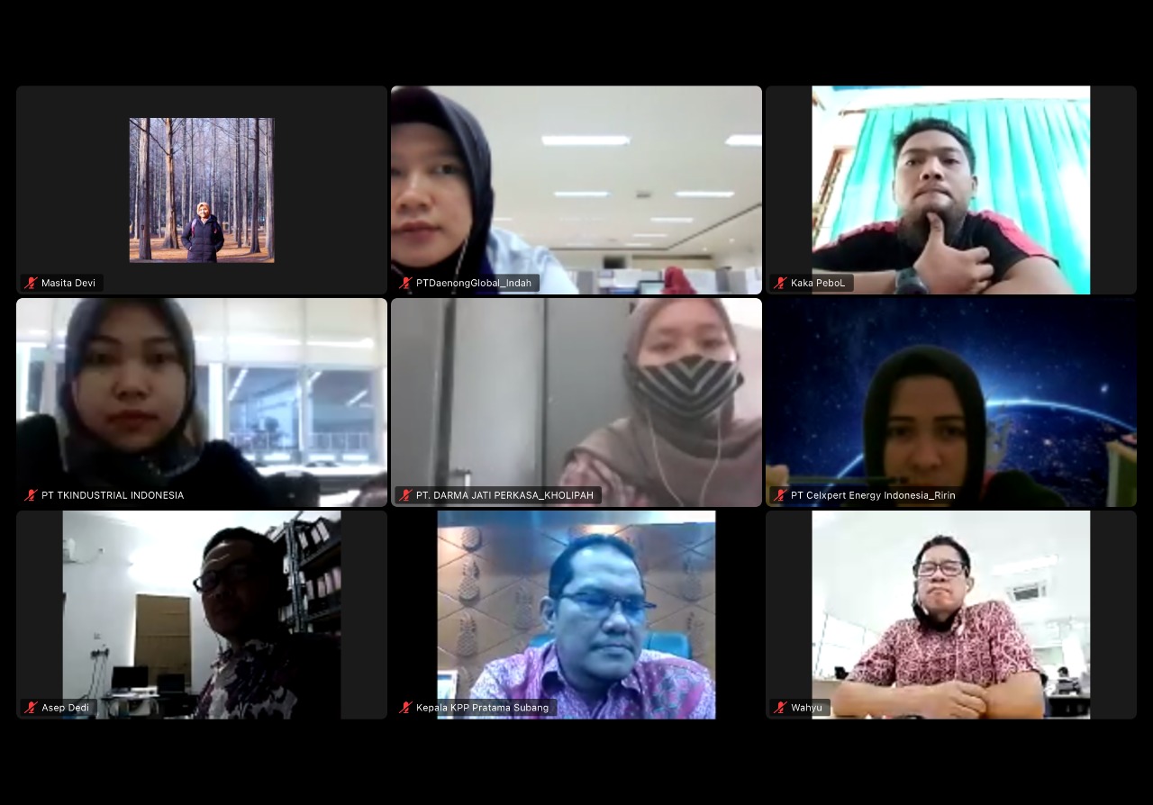 KPP Pratama Subang menyelenggarakan kegiatan Sosialisasi Implentasi Nasional Aplikasi Efaktur 3.0 melalui aplikasi Zoom bersama Paguyuban Accounting Subang dan beberapa Pengusaha Kena Pajak di wilayah Kabupaten Subang (Jumat 19/10).