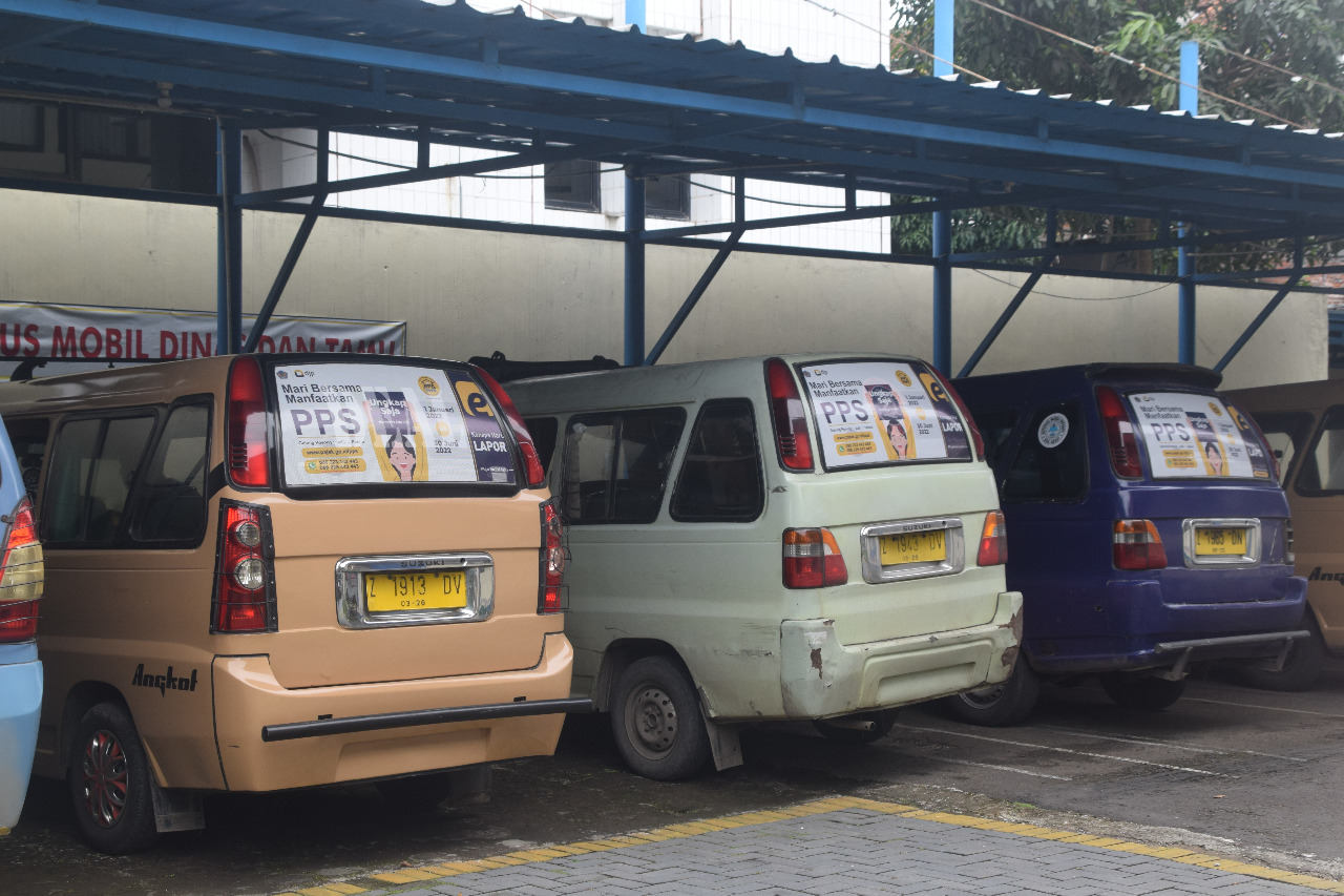 Kantor Pelayanan Pajak (KPP) Pratama Garut memasang stiker mengenai Program Pengungkapan Sukarela (PPS) dan laporan Surat Pemberitahuan (SPT) Tahunan pada Angkutan Kota (Angkot) Kabupaten Garut di halaman KPP Pratama Garut, Jl. Pembangunan No.224, Sukagalih, Tarogong Kidul (Selasa, 15/3).
