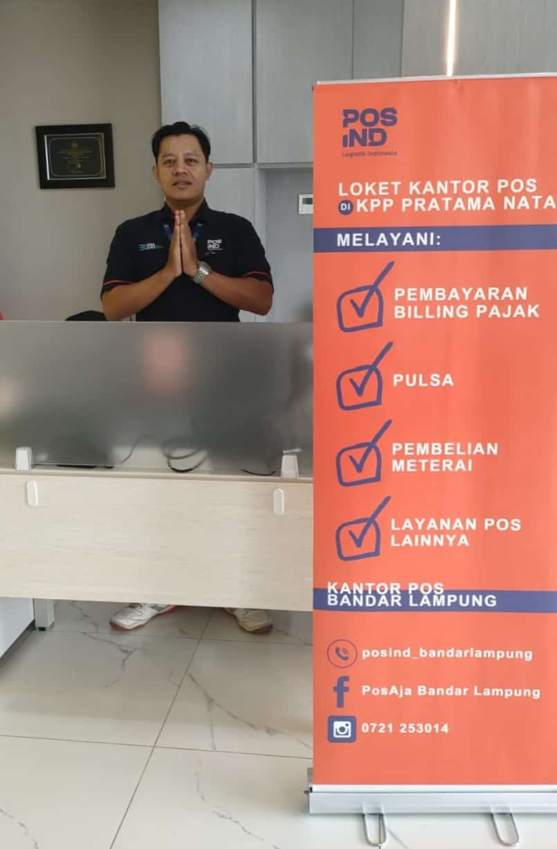 Kantor Pelayanan Pajak (KPP) Pratama Natar membuka layanan baru kepada wajib pajak di Loket Tempat Pelayanan Terpadu (TPT) KPP Pratama Natar, Kabupaten Lampung Selatan (Selasa, 21/1). Layanan baru ini merupakan hasil kerja sama dengan PT Pos Indonesia yang mencakup penyediaan berbagai fasilitas, seperti penjualan meterai, pembayaran pajak, pembelian pulsa, kuota internet, token listrik, pembayaran tagihan air, dan layanan pos lainnya.