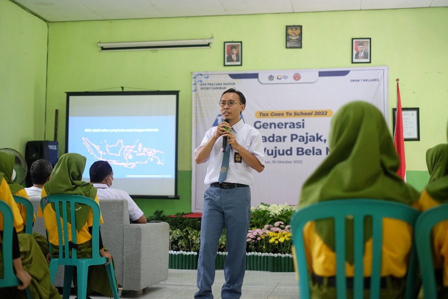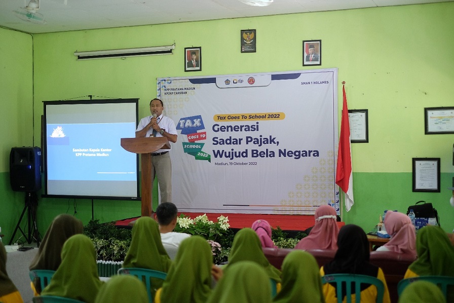 Kantor Pelayanan Pajak (KPP) Pratama Madiun bersama Kantor Pelayanan, Penyuluhan, dan Konsultasi Perpajakan (KP2KP) Caruban mengadakan kegiatan Tax Goes To School (TGTS) tahun 2022 secara luring di SMAN 1 Nglames, Kabupaten Madiun, Jawa Timur (Rabu, 19/10).
