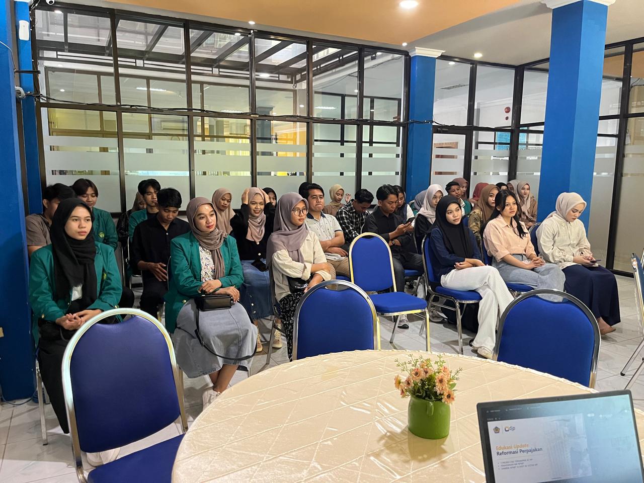 Puluhan mahasiswa UNSIMAR yang terdiri atas relawan pajak dan nonrelawan memadati ruangan. Hal ini dikarenakan selain adanya kuliah umum PSIAP, agenda dilanjutkan dengan pemaparan materi terkait program relawan pajak untuk negeri atau (Renjani) dan program magang Kementerian Keuangan.