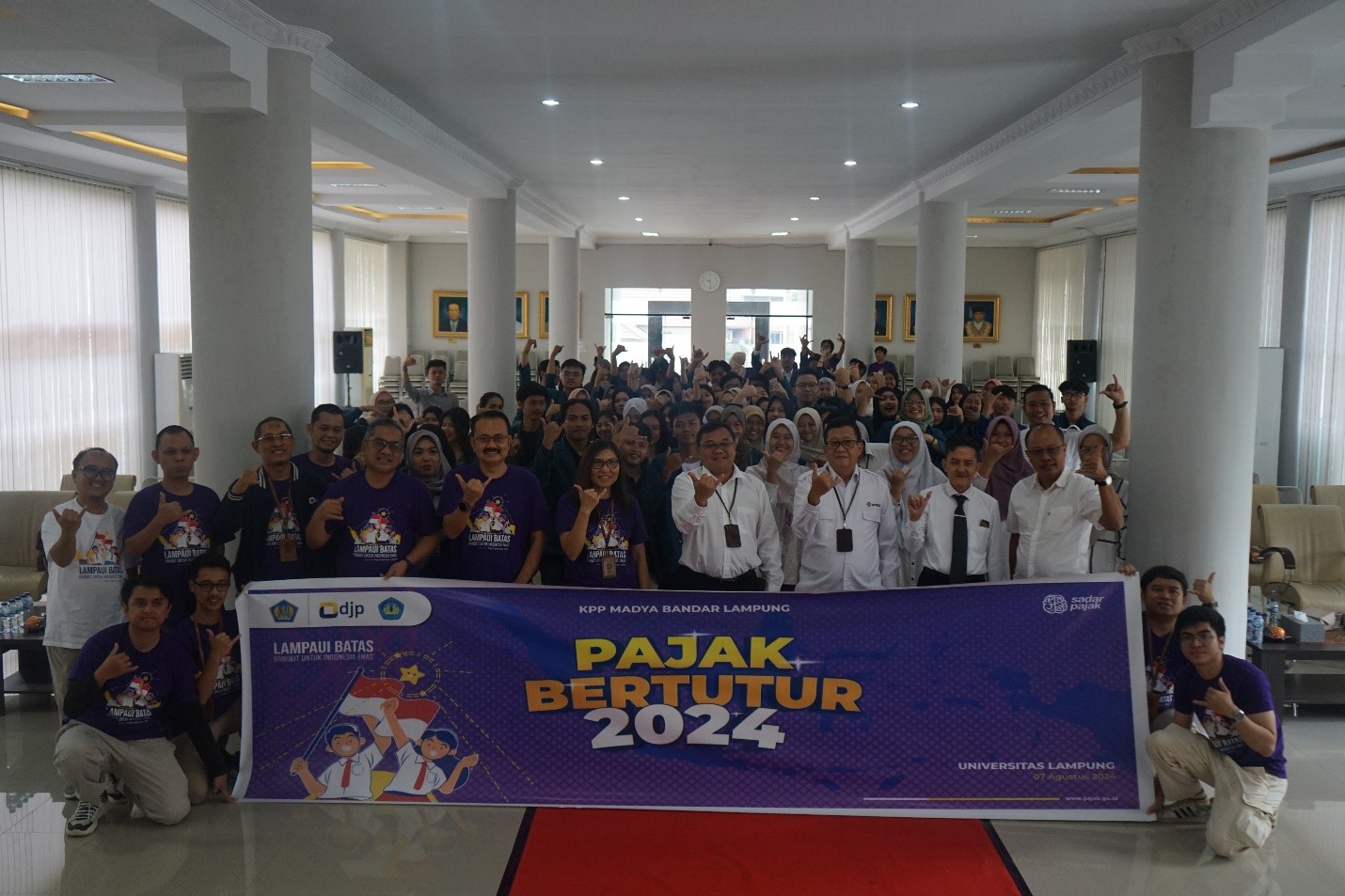Kantor Pelayanan Pajak (KPP) Madya Bandar Lampung kembali menggelar kegiatan Pajak Bertutur Tahun 2024 di Gedung Student Center Fakultas Ekonomi dan Bisnis (FEB) Universitas Lampung (Unila), Jl. Prof. Dr. Ir. Sumantri Brojonegoro No.1, Kota Bandar Lampung, Provinsi Lampung (Rabu, 7/8). Mengusung tema “Lampaui Batas Bangkit untuk Indonesia Emas”, acara ini dihadiri tak kurang dari 100 mahasiswa dan dosen.