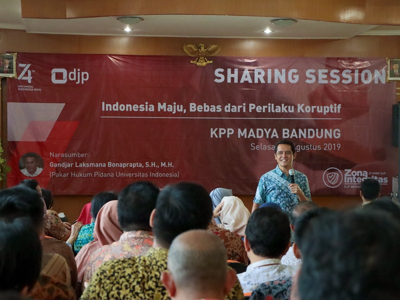 Banyak kita dengar bahwa perilaku korupsi telah membudaya di negeri ini. Hal tersebut dibantah keras oleh Pakar Hukum Pidana dari Universitas Indonesia (UI) Gandjar Laksmana Bonaprapta, S.H., M.H. dalam acara Sharing Session yang bertajuk ‘Indonesia Maju, Bebas dari Perilaku Korupsi’ di Aula KPP Madya Bandung (Selasa, 20/8).