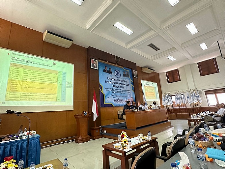 Sekitar 100 anggota Gapensi Jawa Barat yang berasal dari semua penjuru Jawa Barat menghadiri sosialisasi aspek perpajakan wajib pajak konstruksi yang diselenggarakan berkat kerja sama Gabungan Pelaksana Konstruksi Nasional (Gapensi) Jawa Barat dan Kantor Wilayah Direktorat Jenderal Pajak (Kanwil DJP) Jawa Barat I di Kantor Gapensi Jalan Terusan Galunggung nomor 7 Kota Bandung (Rabu, 30/8).