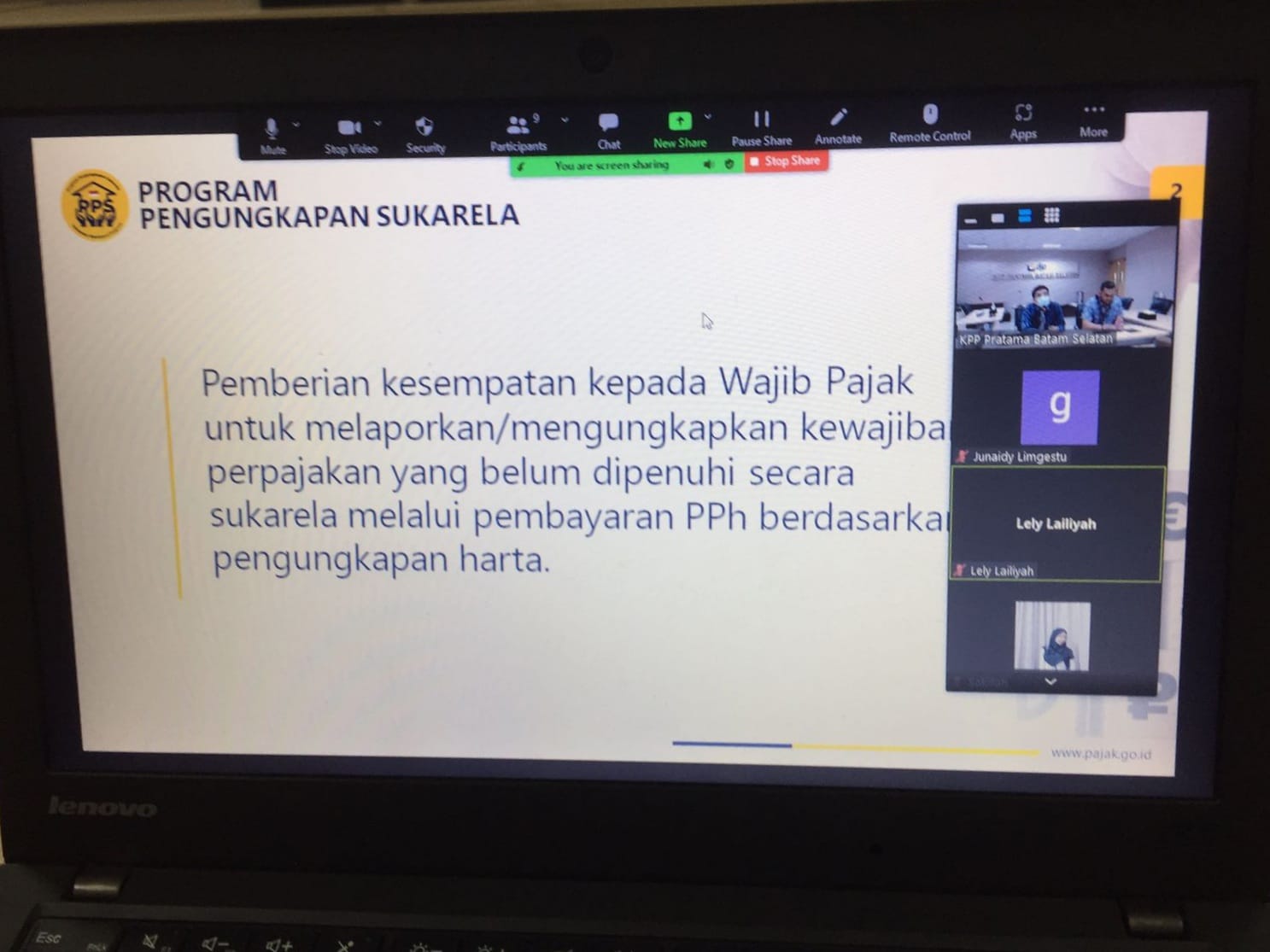 Kantor Pelayanan Pajak (KPP) Pratama Batam Selatan mengadakan Kelas Pajak untuk Sosialisasi Program Pengungkapan Sukarela (PPS) secara daring di Batam, Kepulauan Riau (Kamis, 17/3). Kelas Pajak kali ini dibagi menjadi 2 sesi: sesi pagi yang dimulai dari pukul 10.00 WIB dan sesi siang yang dimulai pukul 14.00 WIB.