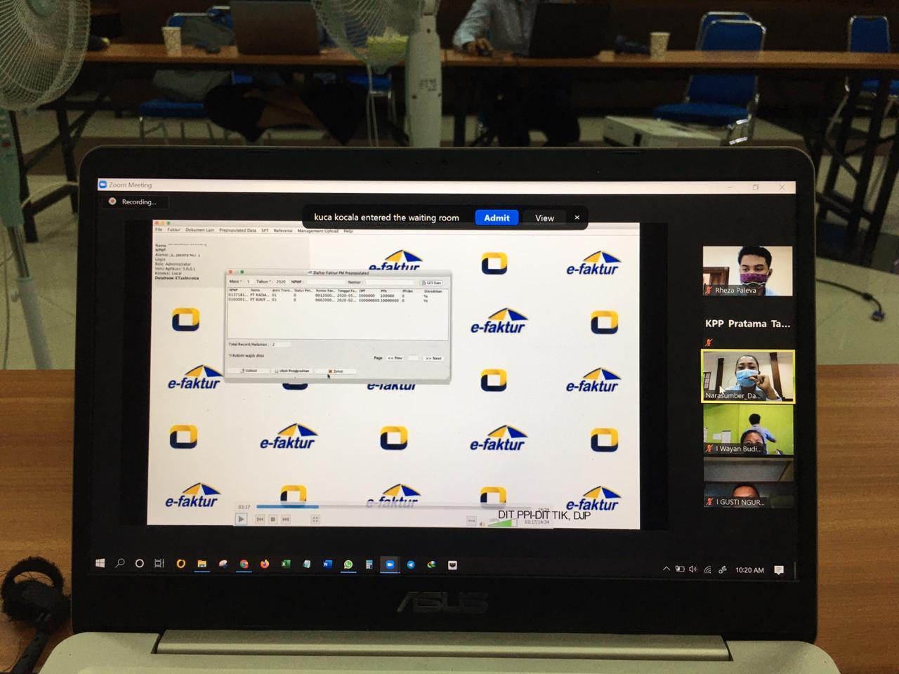 Kantor Pelayanan Pajak (KPP) Pratama Tabanan mengadakan kelas pajak secara daring melalui aplikasi zoom meeting di Aula KPP Pratama Tabanan langsung (Rabu,18/11).