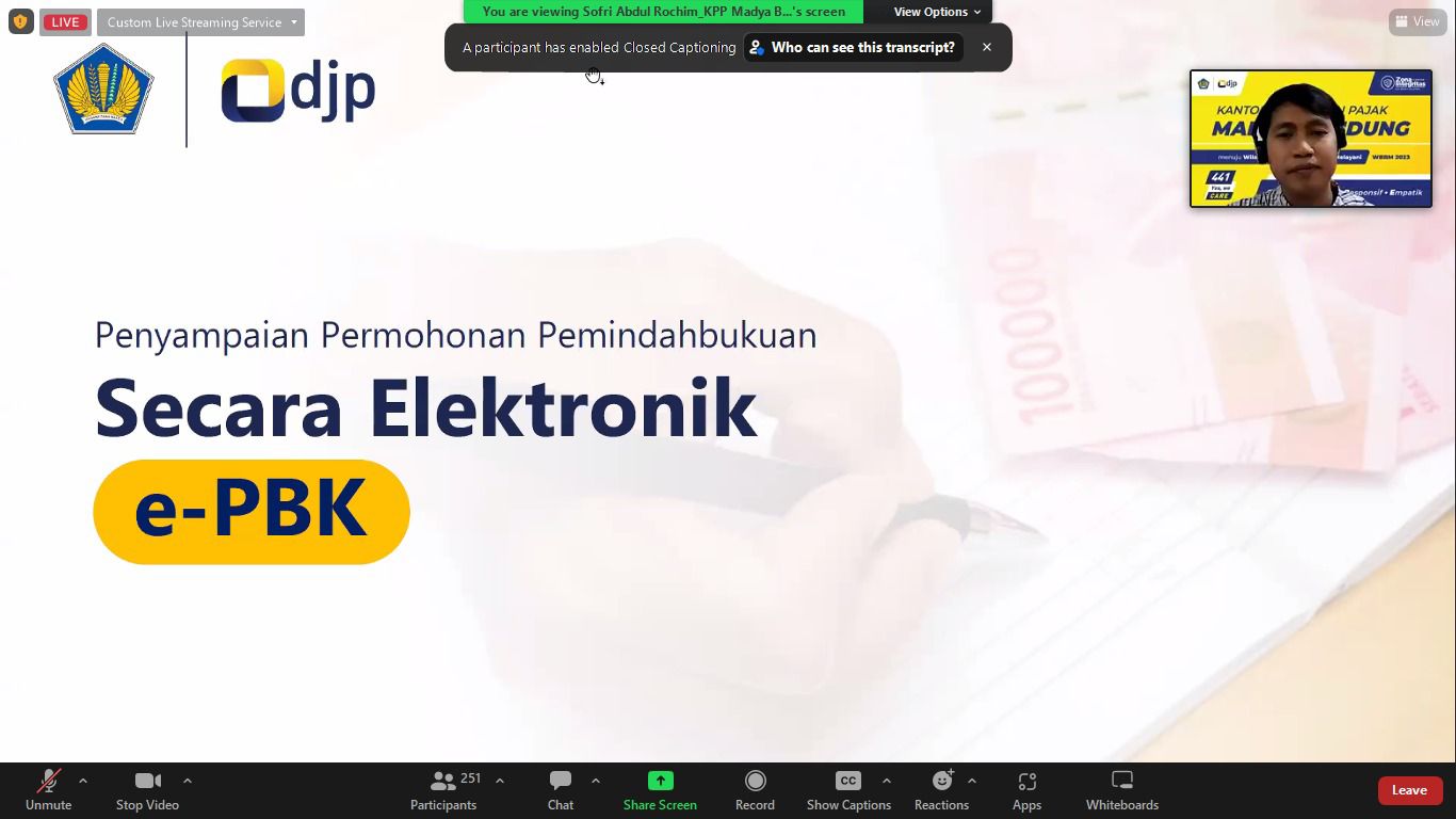 Pada kelas pajak kali ini, Penyuluh Pajak KPP Madya Bandung Sofri Abdul Rochim menjelaskan beberapa ketentuan yang perlu diperhatikan dalam permohonan pemindahbukuan yang disampaikan melalui layanan e-Pbk. Diantaranya yaitu e-Pbk saat ini hanya dapat digunakan untuk melakukan pemindahbukuan pada NPWP yang sama.